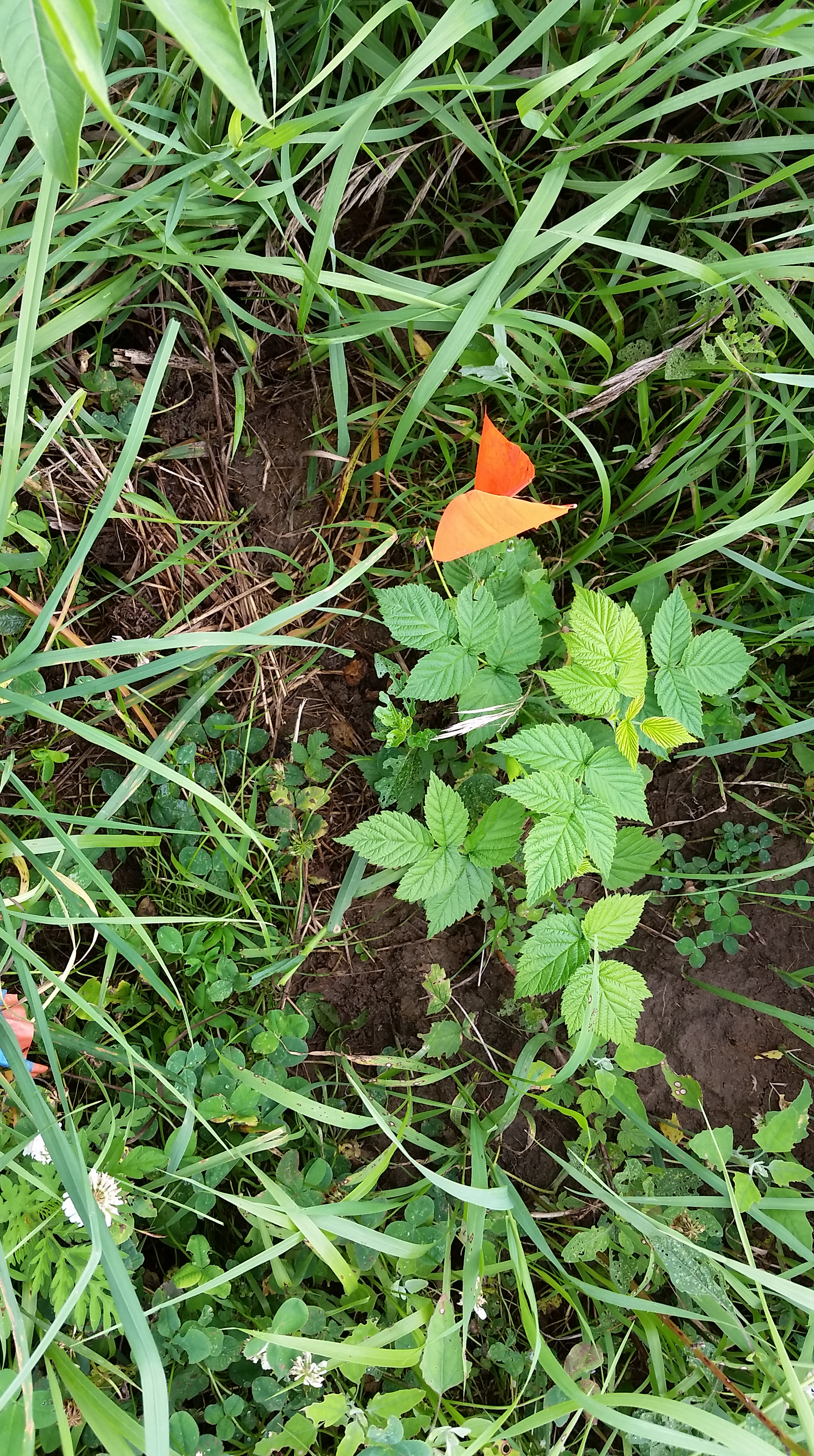 Raspberries we transplanted have survived and thrived with the wet conditions in the swales.