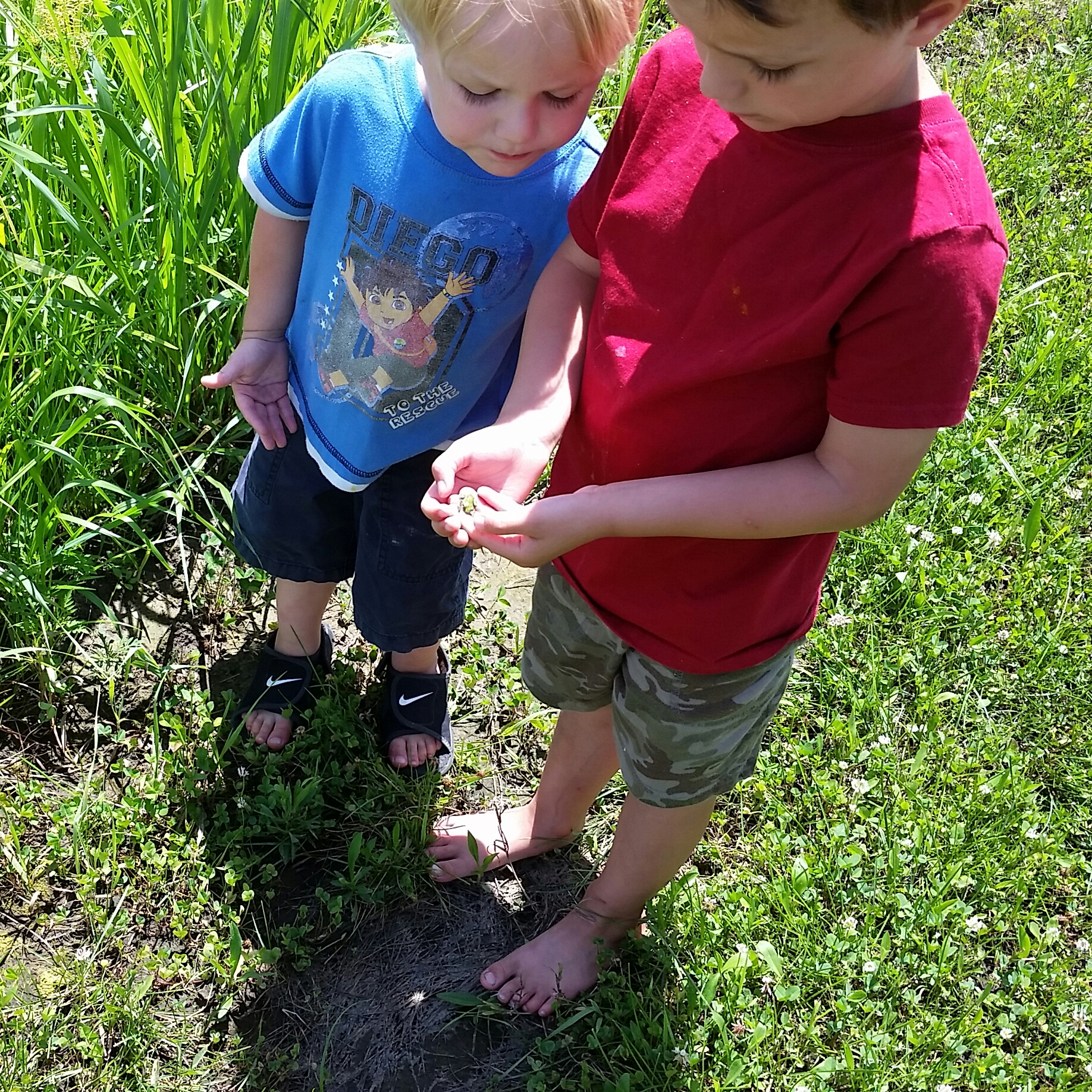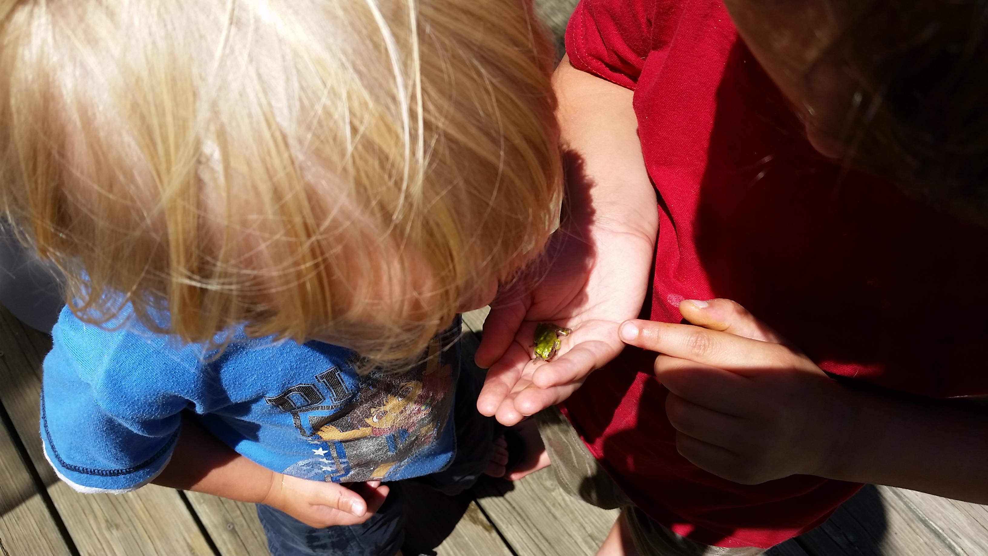 He and Jake took turns holding the frog, petting the frog and talking to the frog.