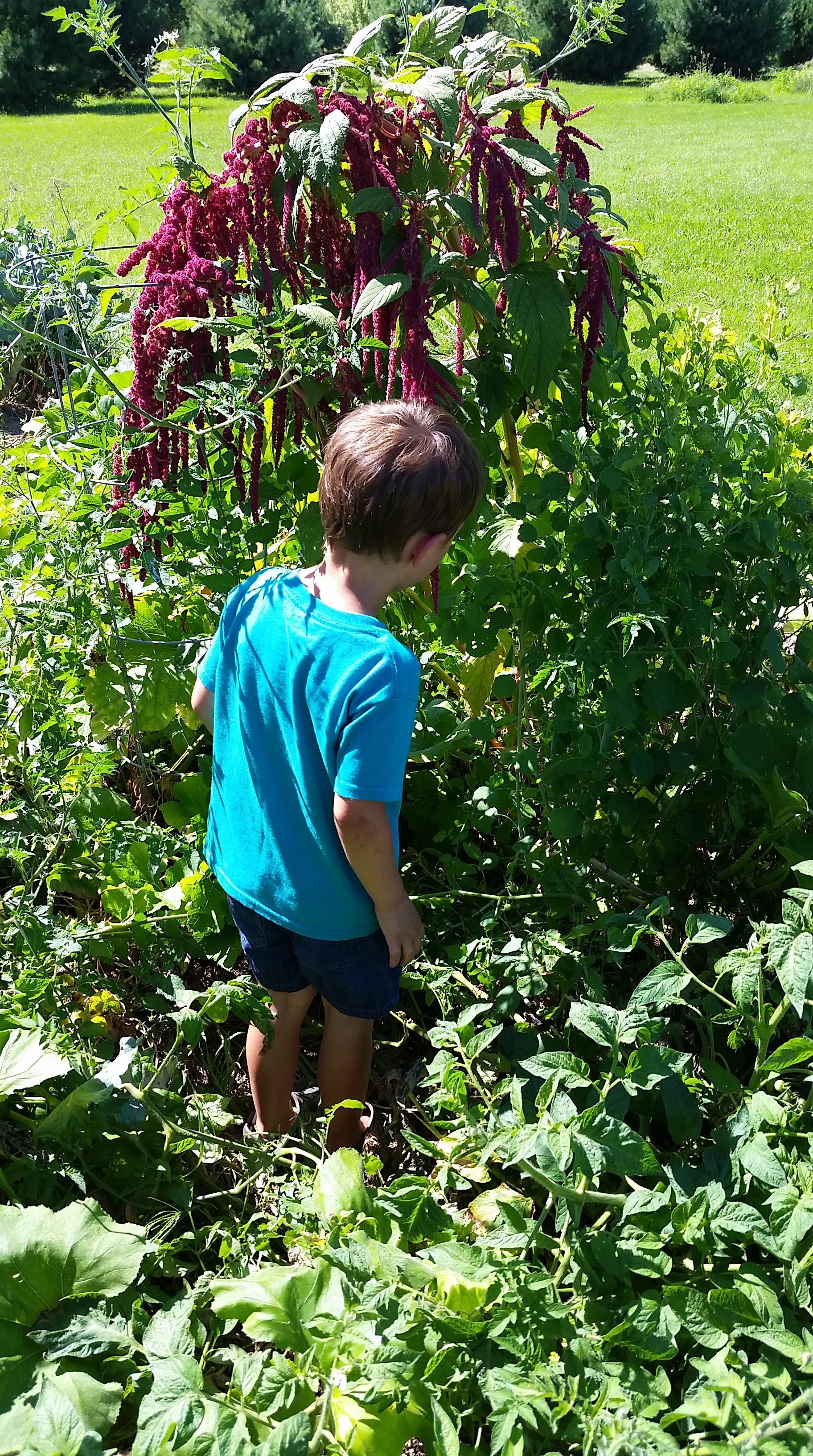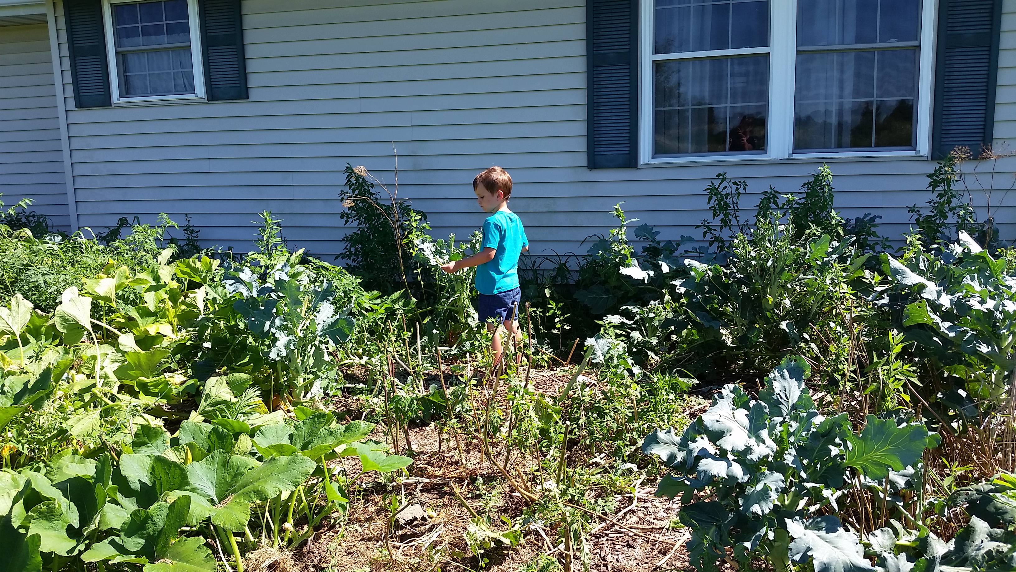 Joe is enjoying the destruction of the broccoli, cabbage, weeds and borage. He flits from plant to plant, pulling leaves, stems and roots with the abandon and energy only a 4-year-old can muster.