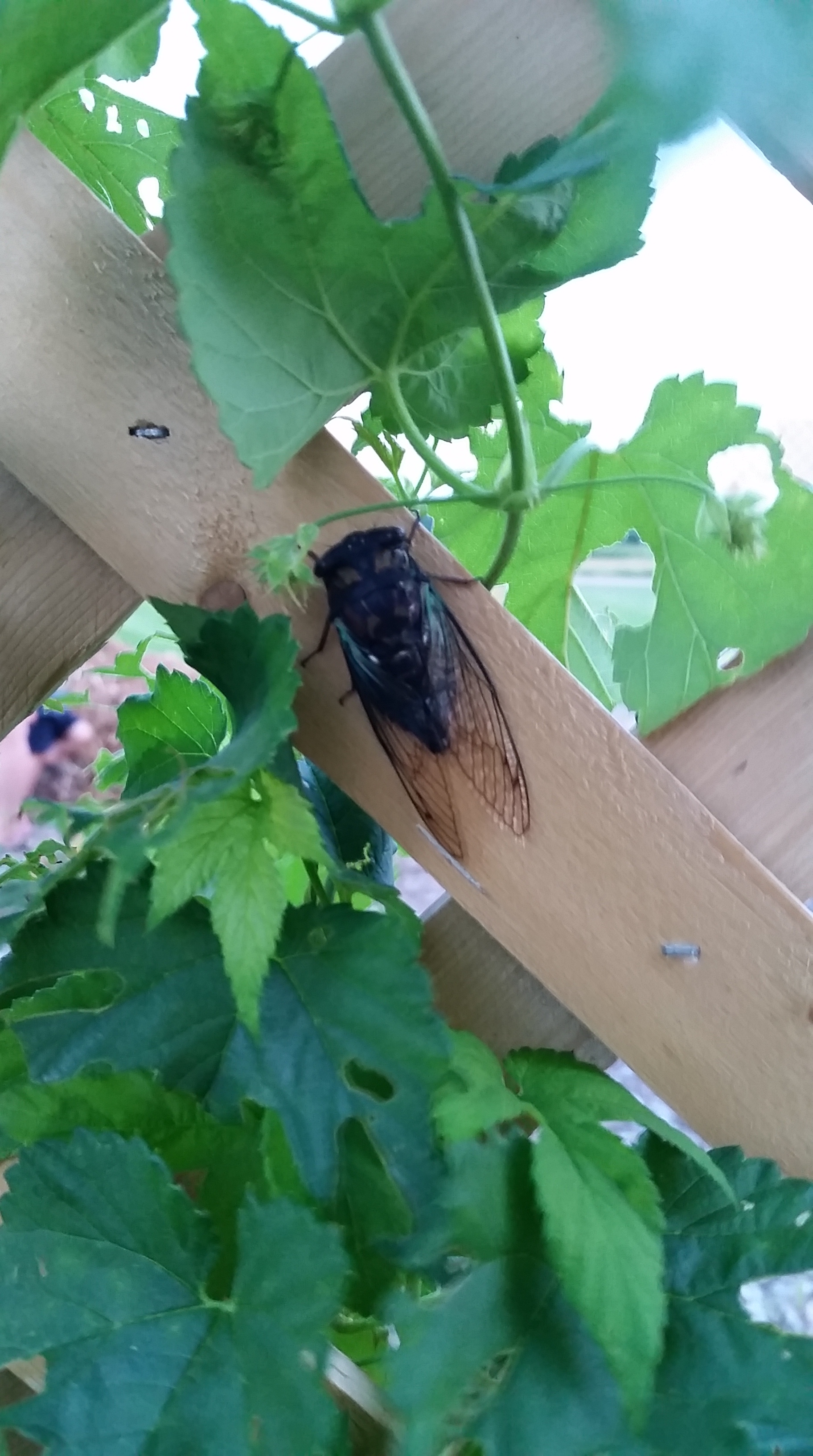 When I saw a big cicada on our hops trellis, I was excited. I called the boys over to look at it, thinking my little bug hunters would be fascinated.