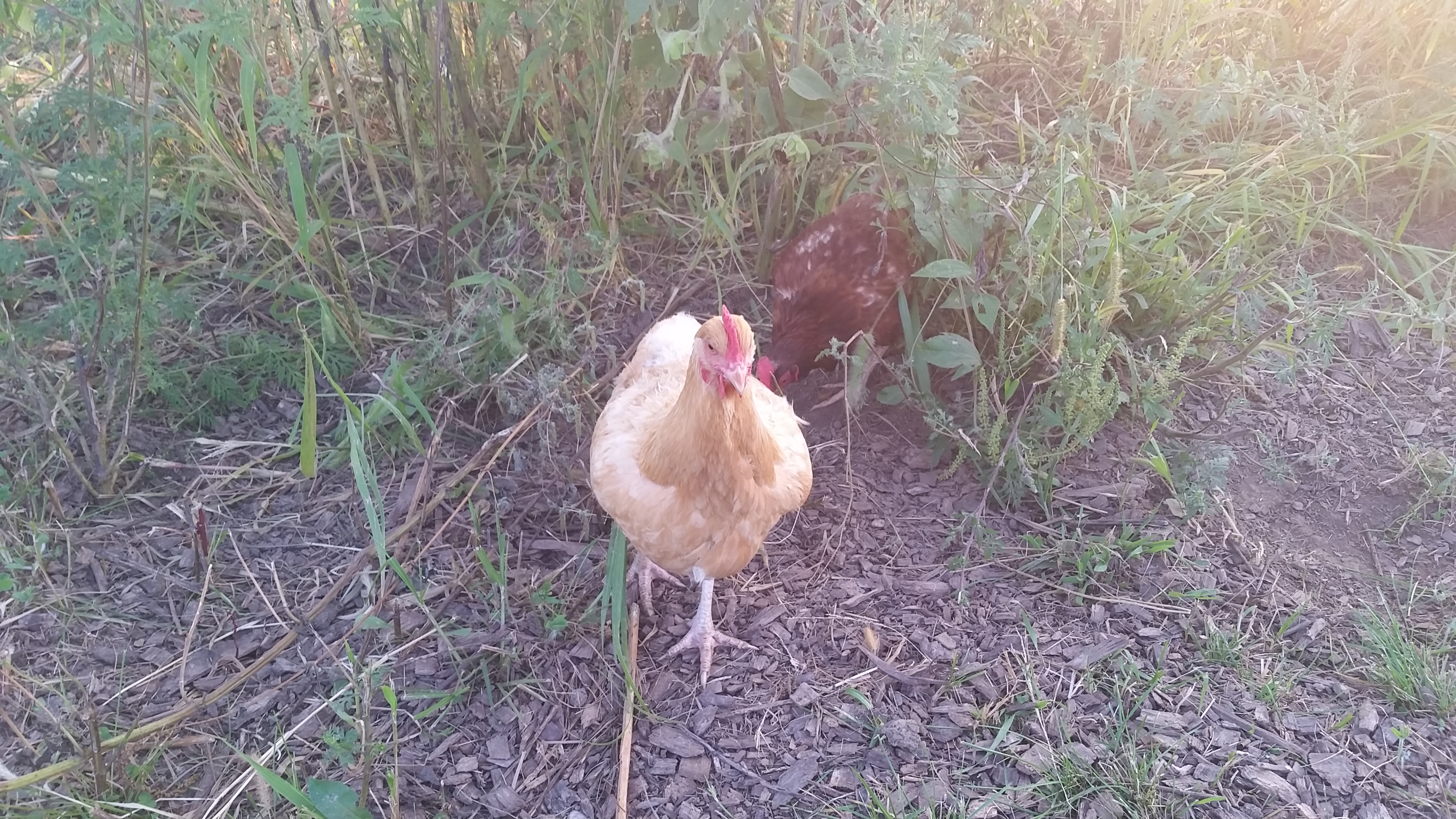 Once on the fresh grass, the hens bounded out and chased grasshoppers and crickets that had been disturbed by the rolling playpen.