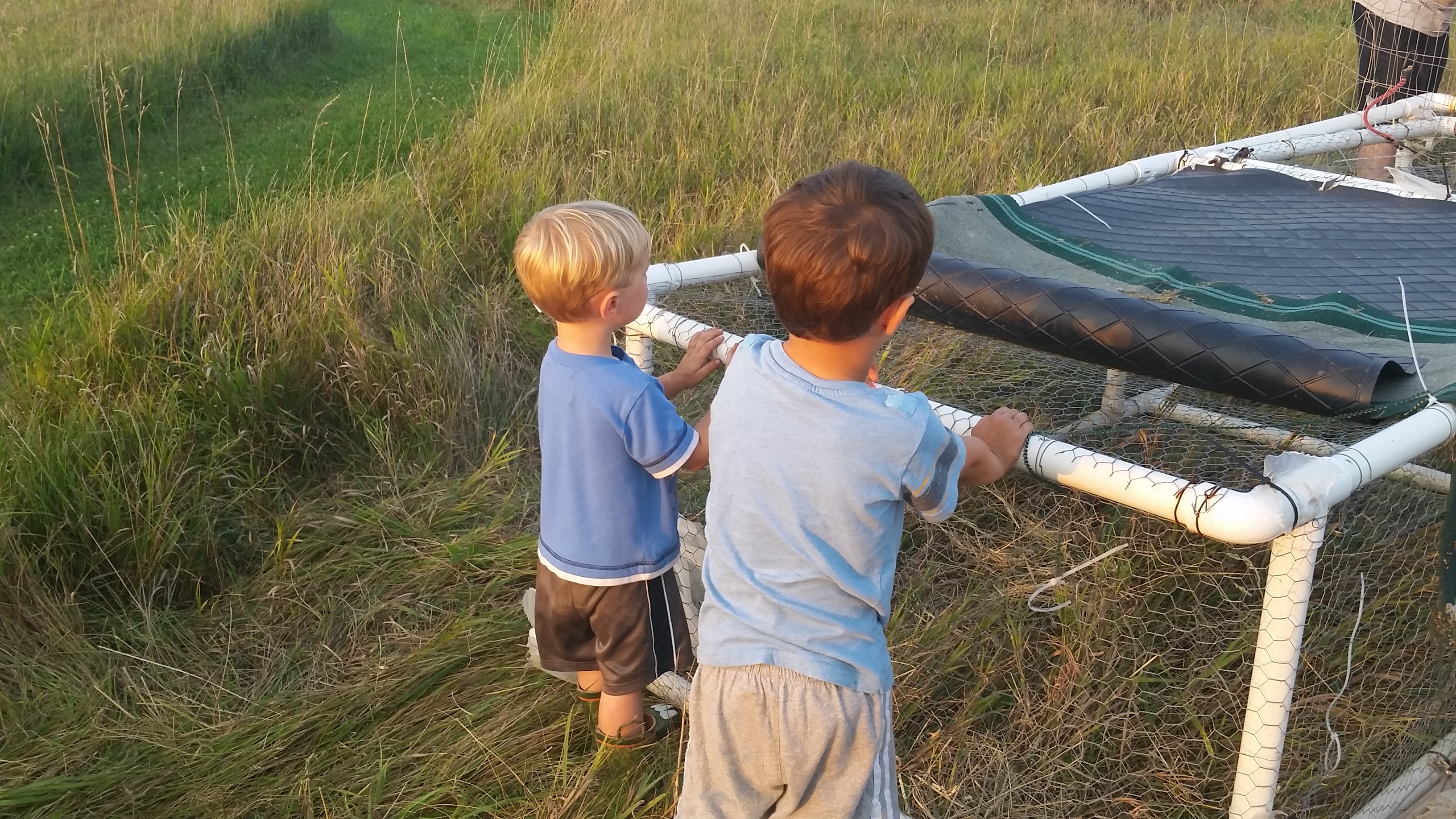 Once all were in the coop, the boys helped us move the ladies onto fresh grass.