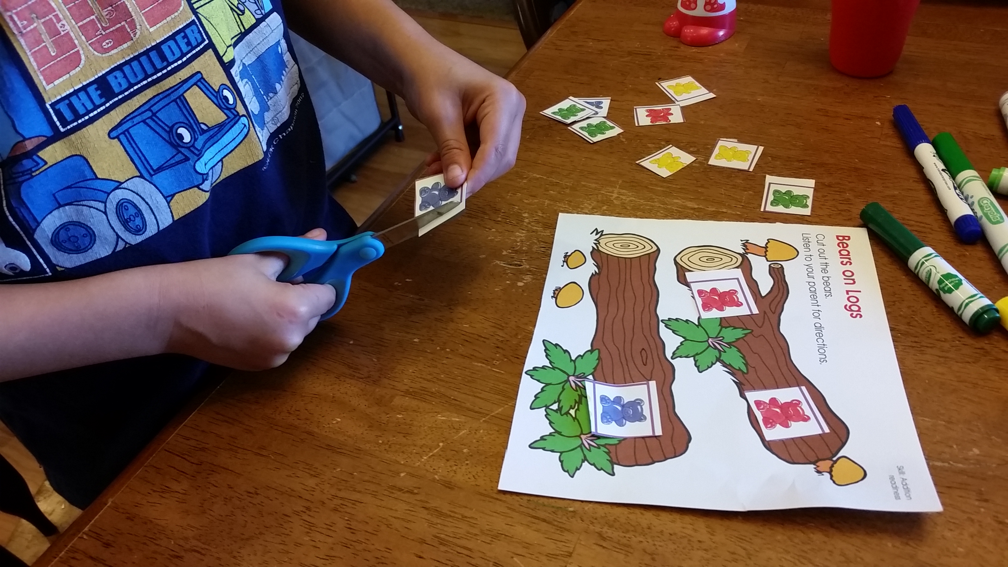 Then, we played the “Bears on a Log” addition game included in the workbook.