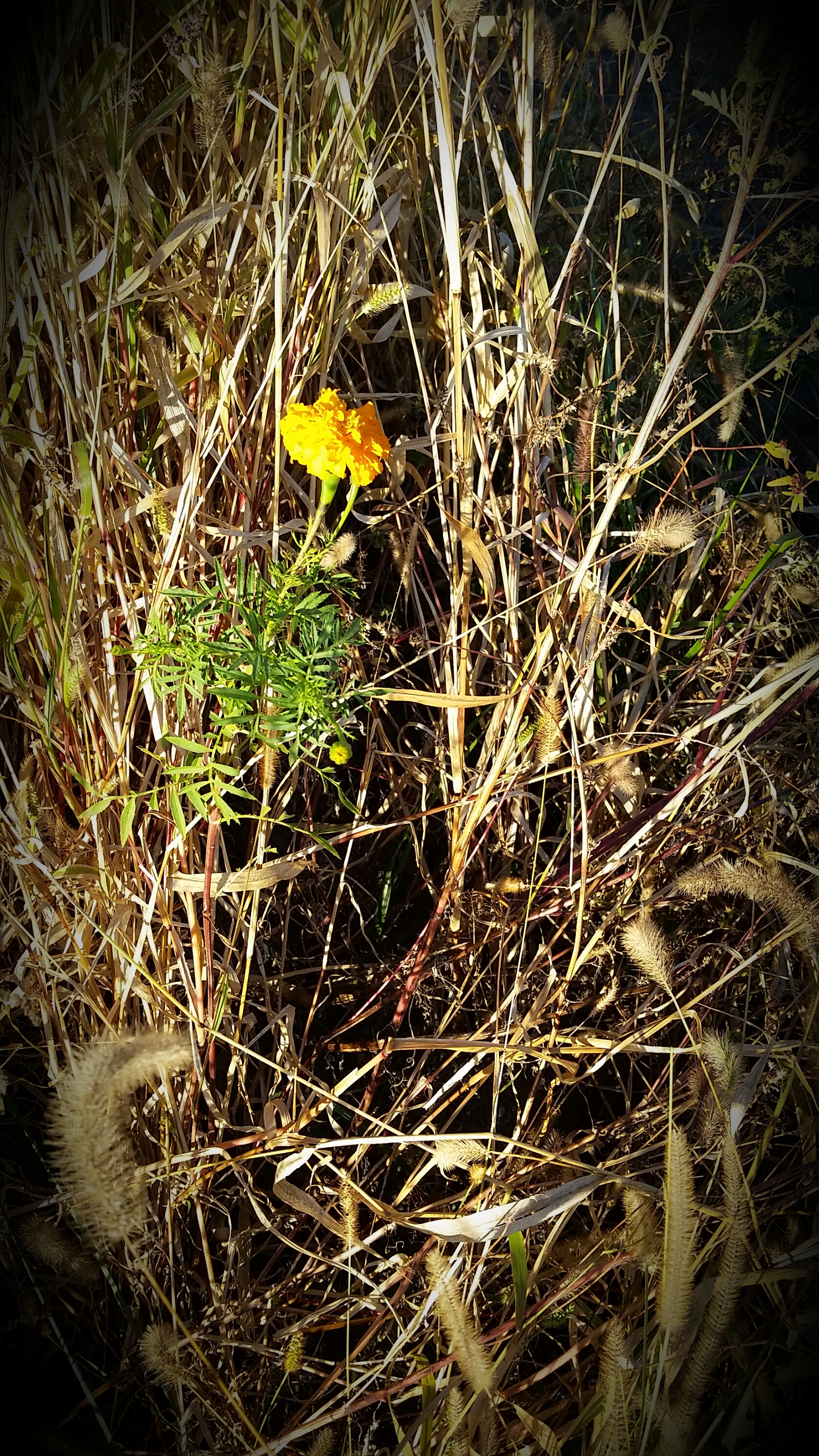 Before going inside, I came back to gaze at this lone marigold that was so determined to see the sun.