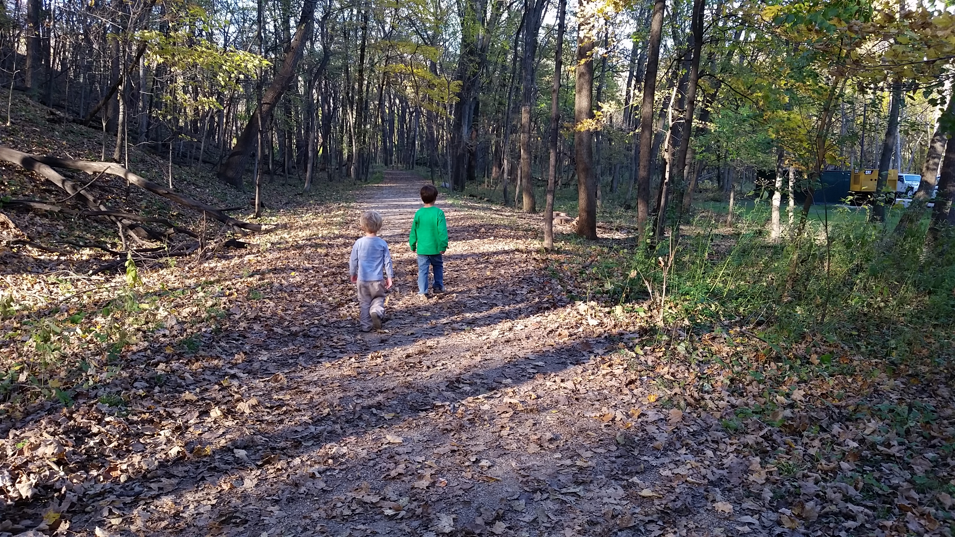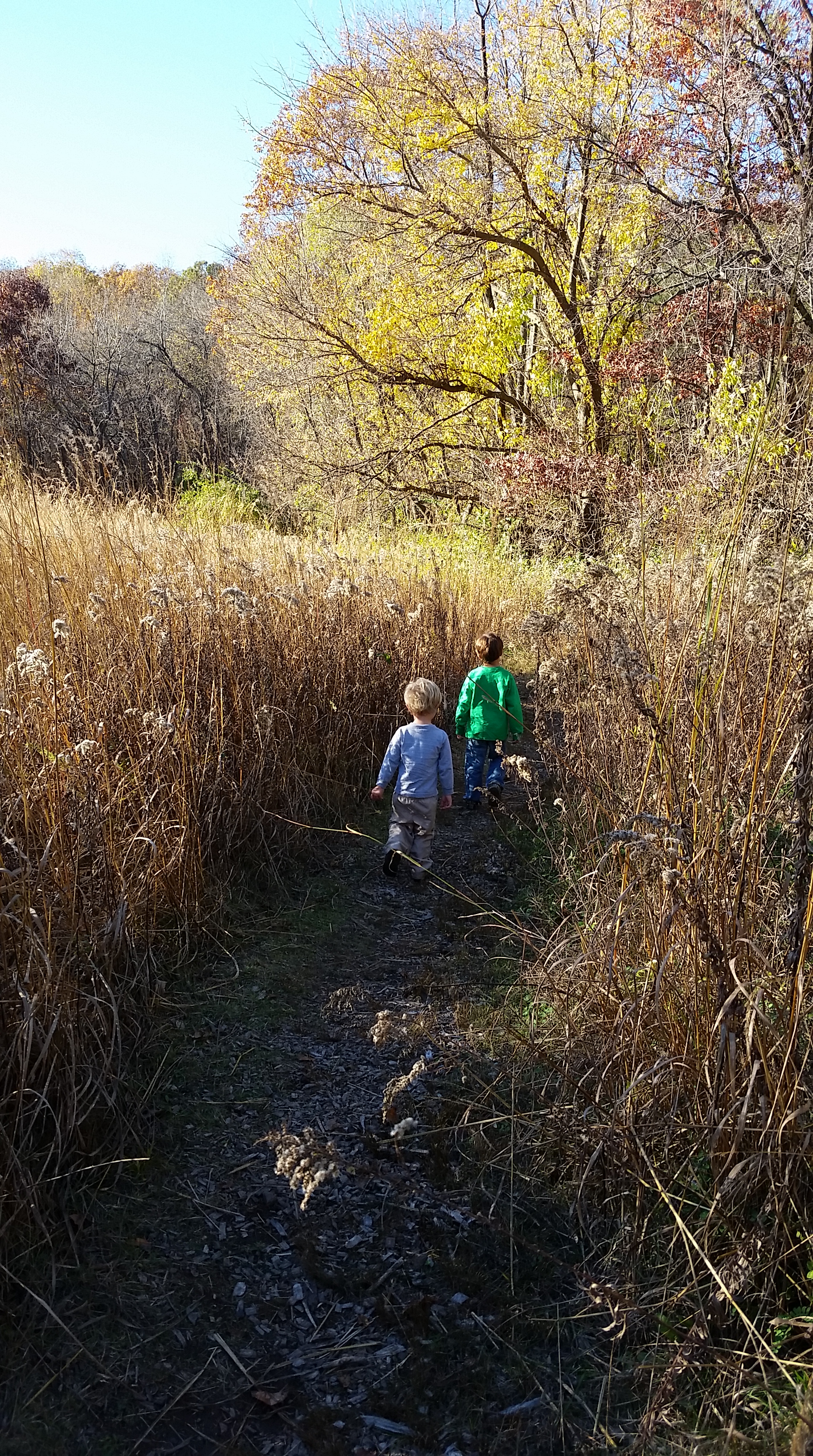 The boys had an amazing adventure in the hour we were there. They climbed trees, pretended to be lumberjacks and found secret trails to secret hideouts.