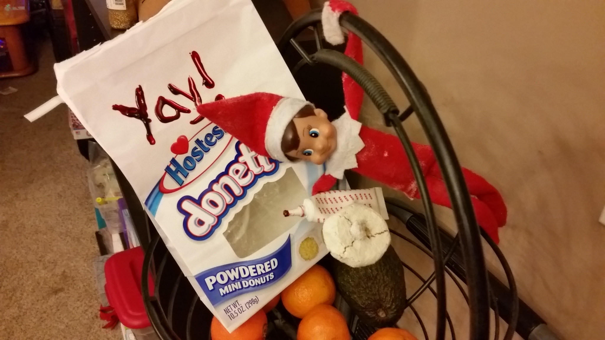I know his mom is getting tired of all these sweets so, in an effort to make her happy, I am hanging out in the fruit basket.