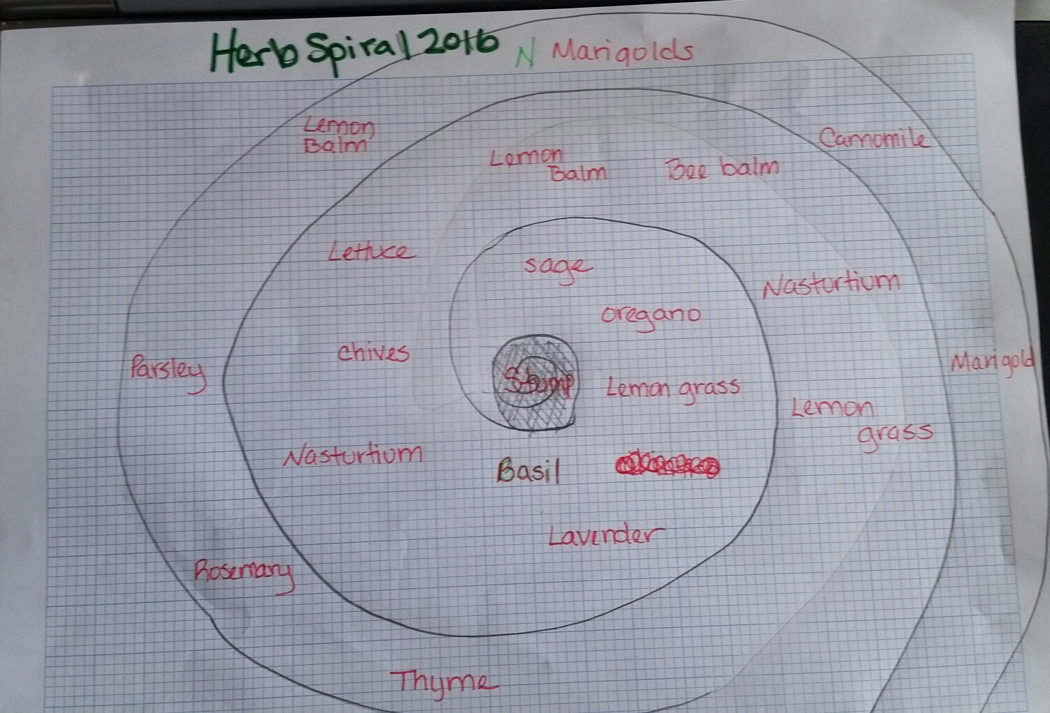 I added Nasturtiums and marigolds to the design too. Nasturtiums will ward off aphids and white flies while the marigolds will attract pest predators.