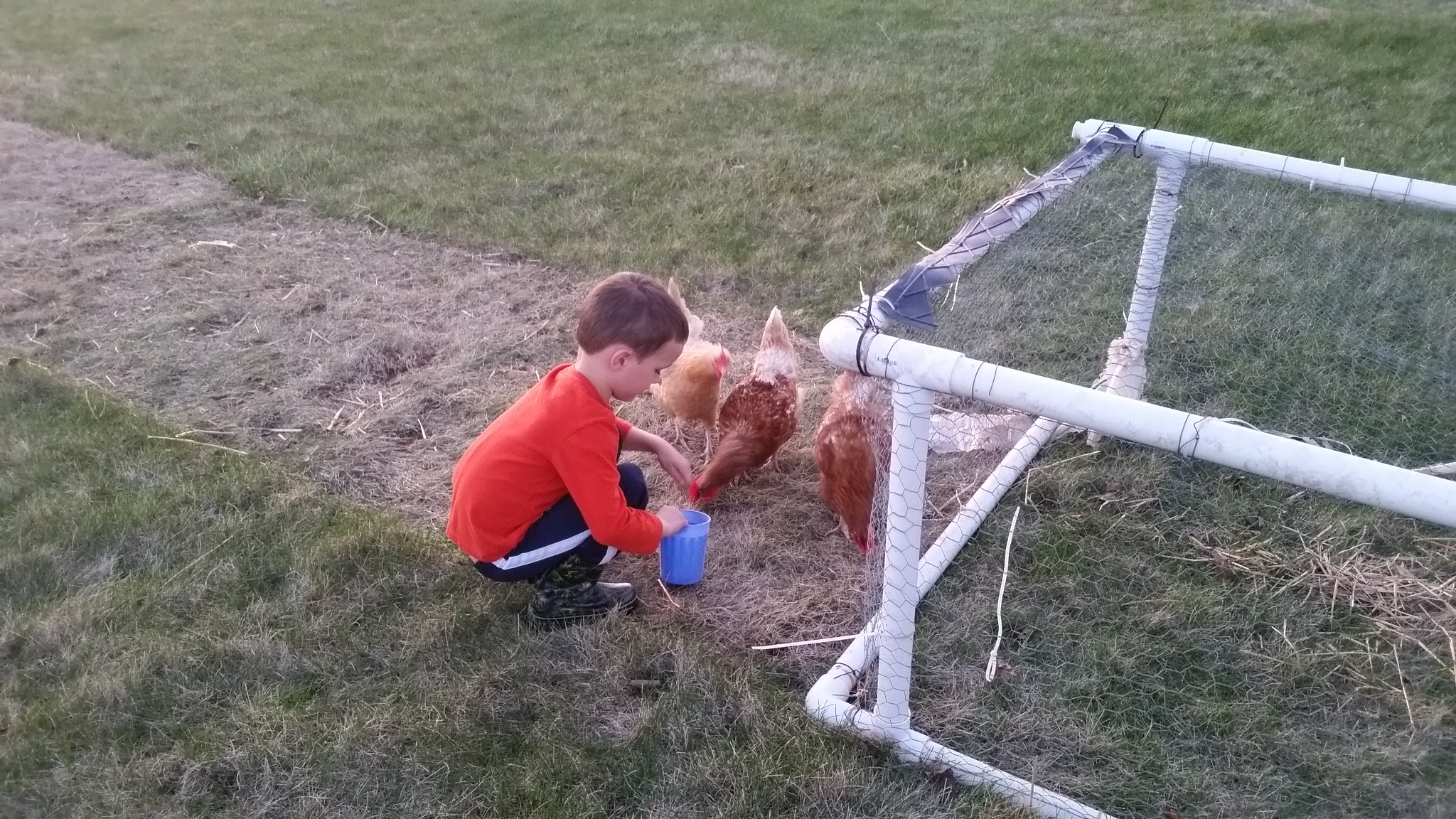 Joe is always excited when we let the chickens out to roam.