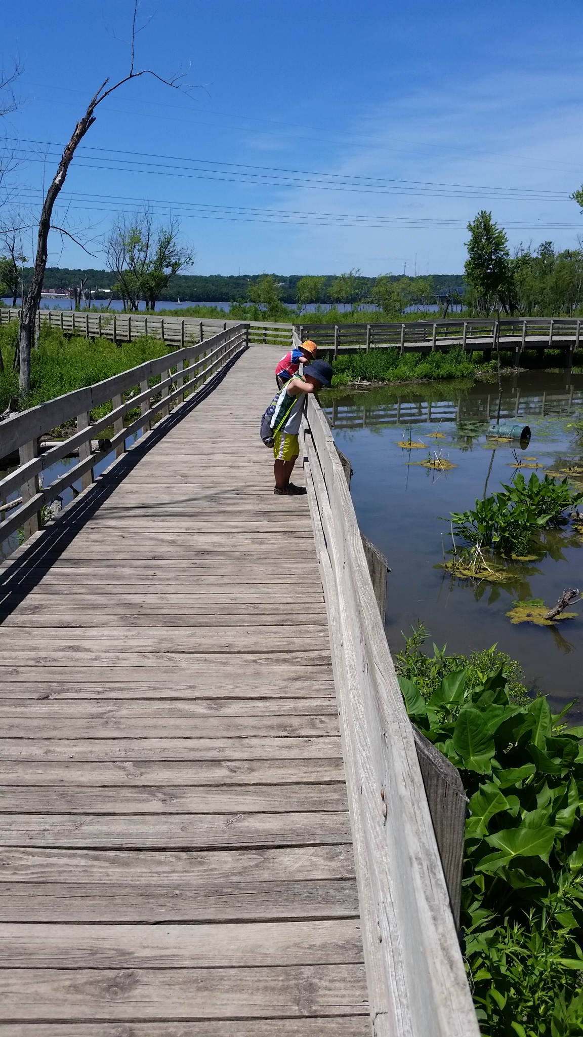 We came upon a wooden walkway where we saw huge dragonflies chasing each other and flittering from reed to reed.