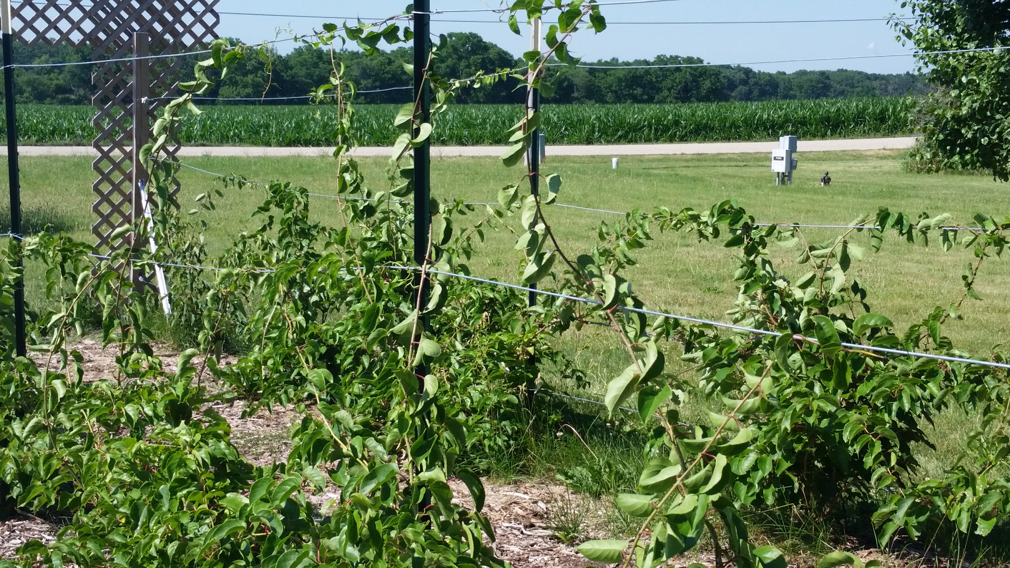 Grape vines and kiwi raised high
