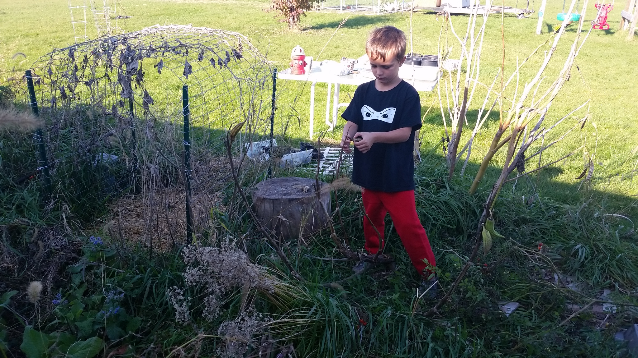 Perhaps telling the boys that it was time to “destroy the garden” was a little short sighted; but it was worth it to see how much fun they had chopping, pulling and stomping all over the kitchen garden.