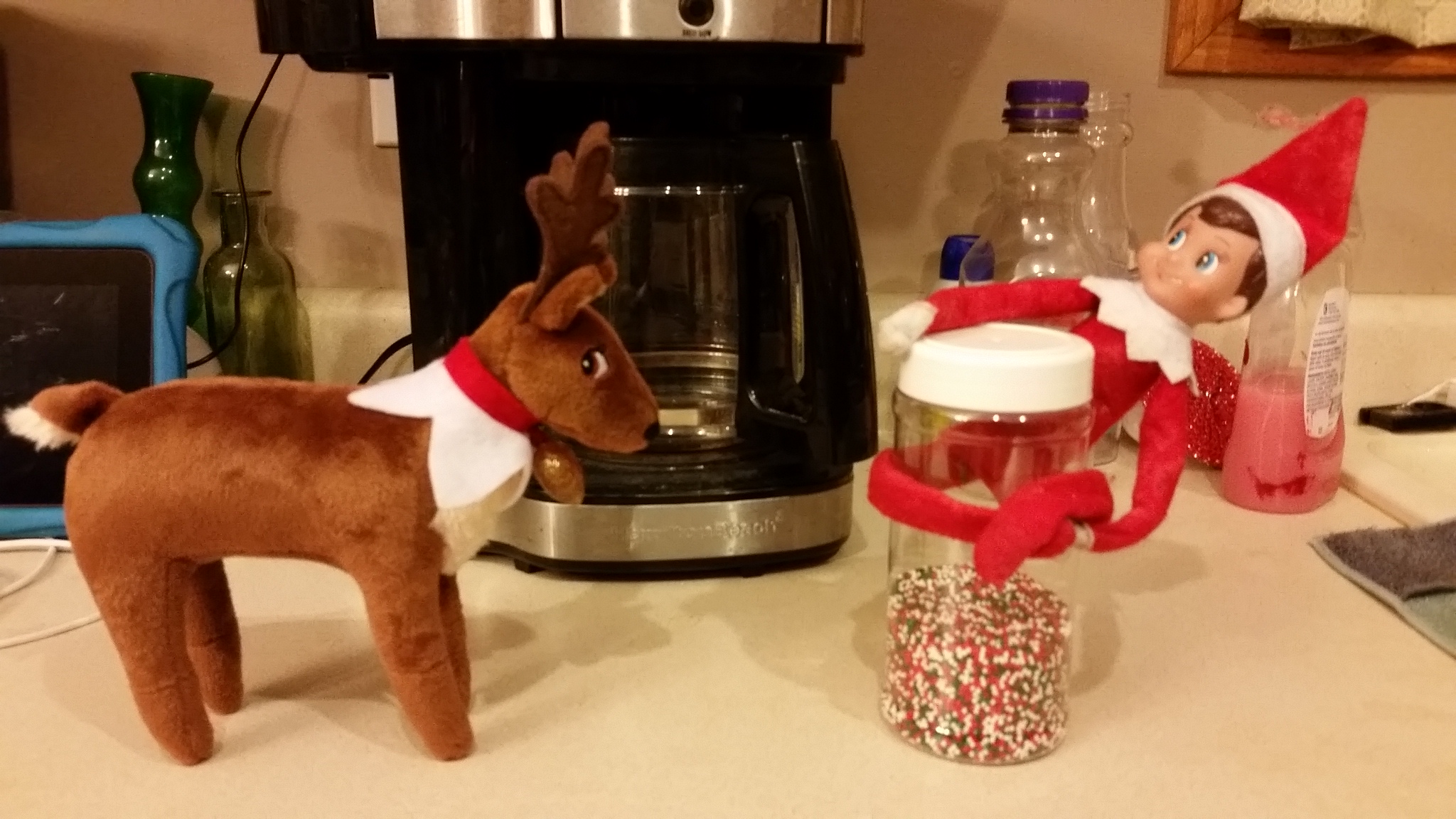 “Yep, real nice! Such Christmas spirit! Such joy!” agreed Nim. “Now, for tonight I thought we could get out all of the Christmas sprinkles and spill them out on the counter and write our–”
