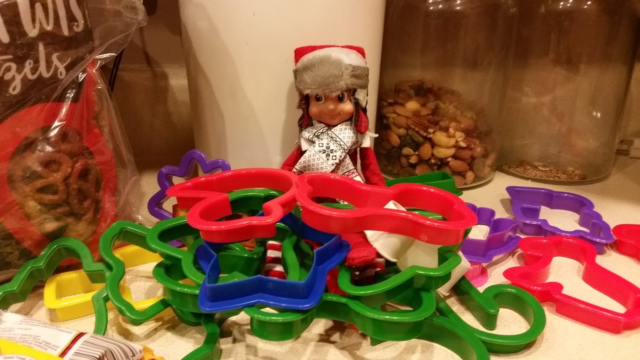 “I just need you to start sorting the cookie cutters. Can you pull all of the Christmas ones out and throw them over on the counter?”