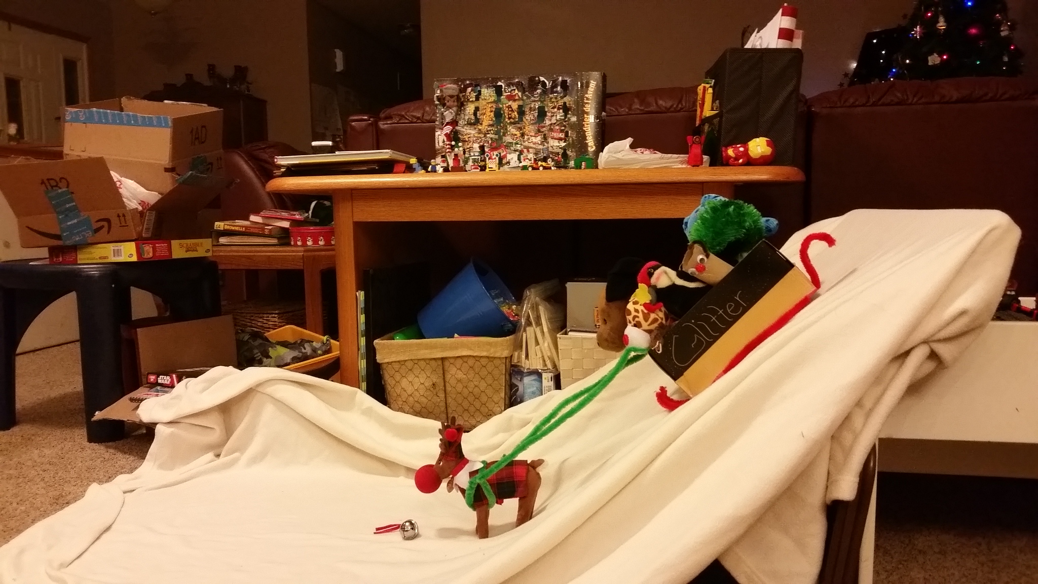 “I can practice pulling the sled! Like a real reindeer on Christmas eve!”