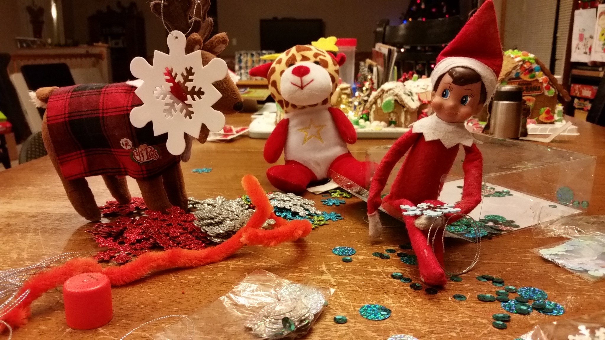 “We don’t have time for paper snowflakes anyway. The boys will be up soon,” said Glitter pointing an antler at the clock.