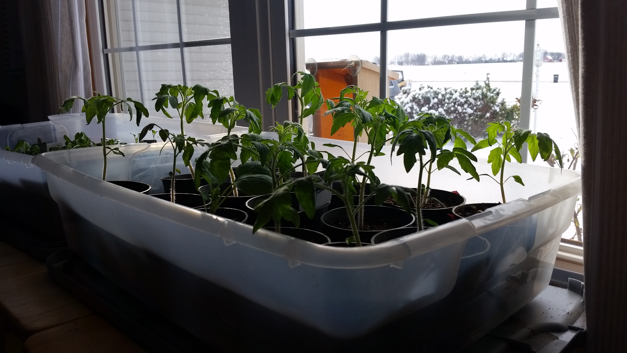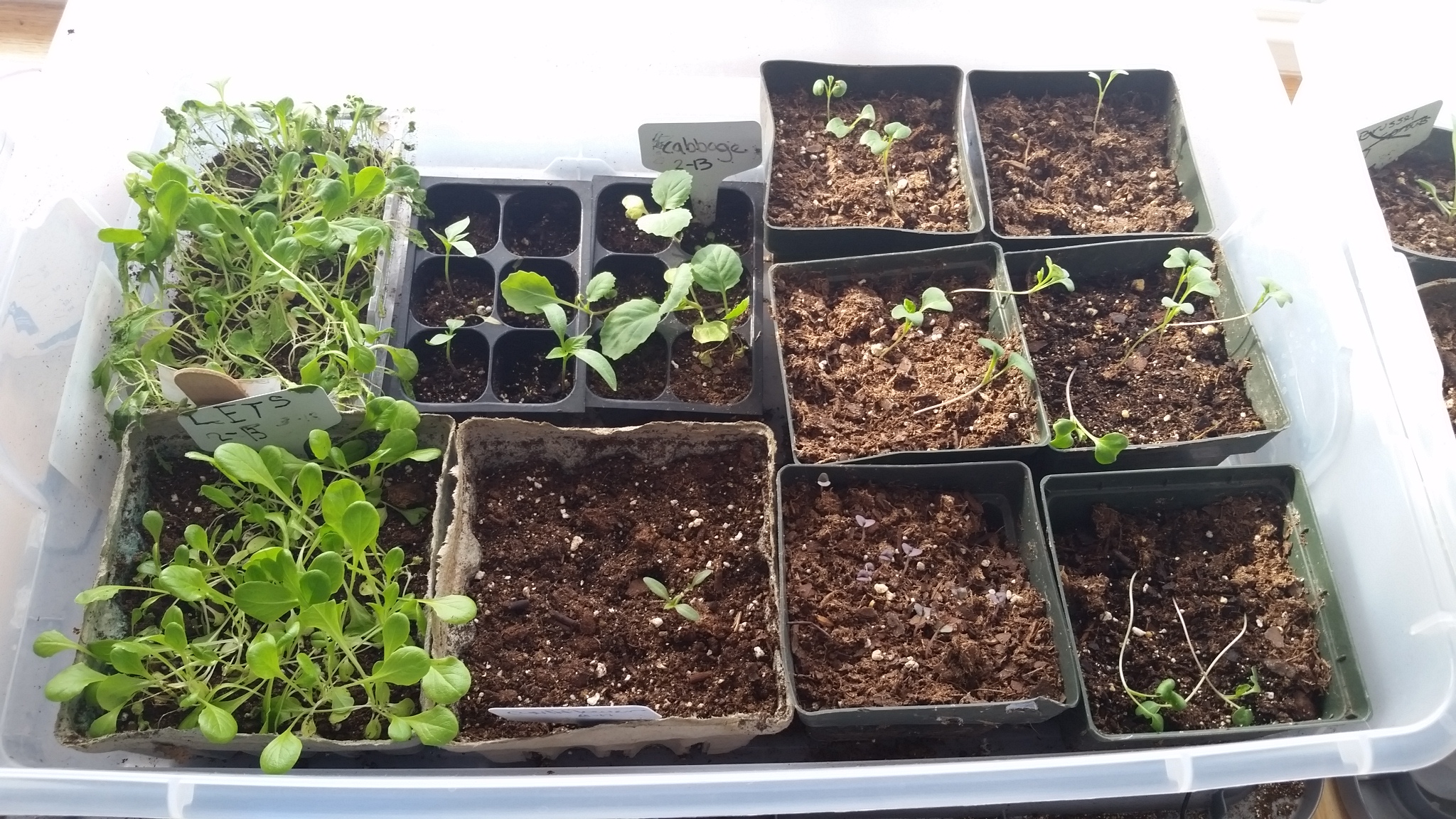 Lettuce is wilty and not looking good, but the cabbage and amaranth are still going strong. The poor broccoli isn’t getting enough sun and got a little too leggy.