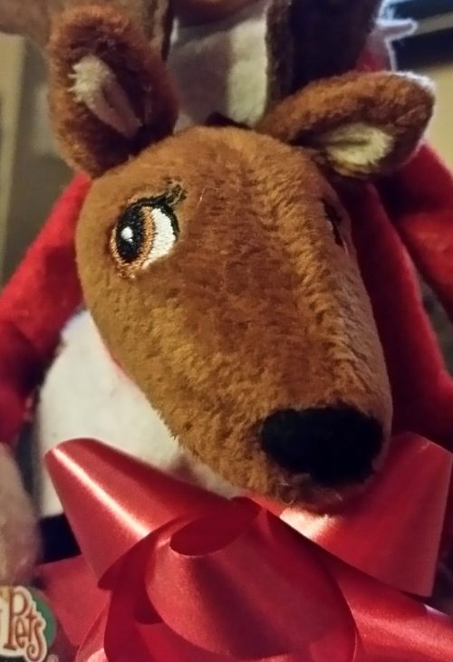 “What about Glitter?” asked Lil nodding her head at the sleeping reindeer.