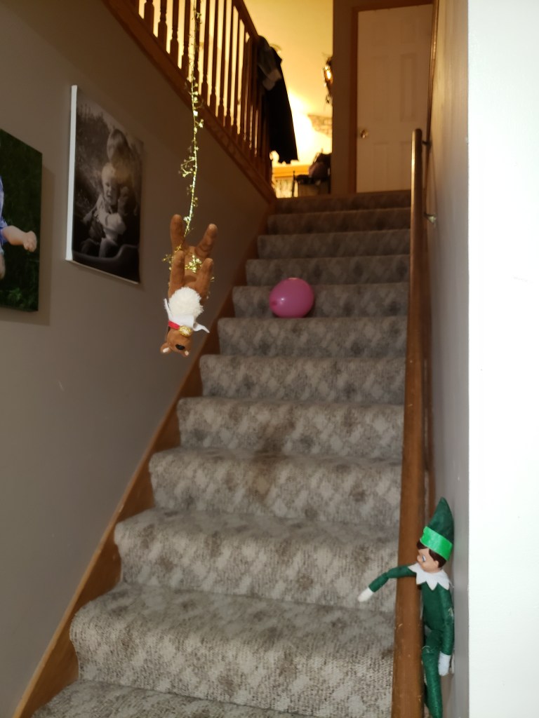 “INCOMING!” Pixie streamed the rest of the way down the stairs taking cover under the game shelf.
