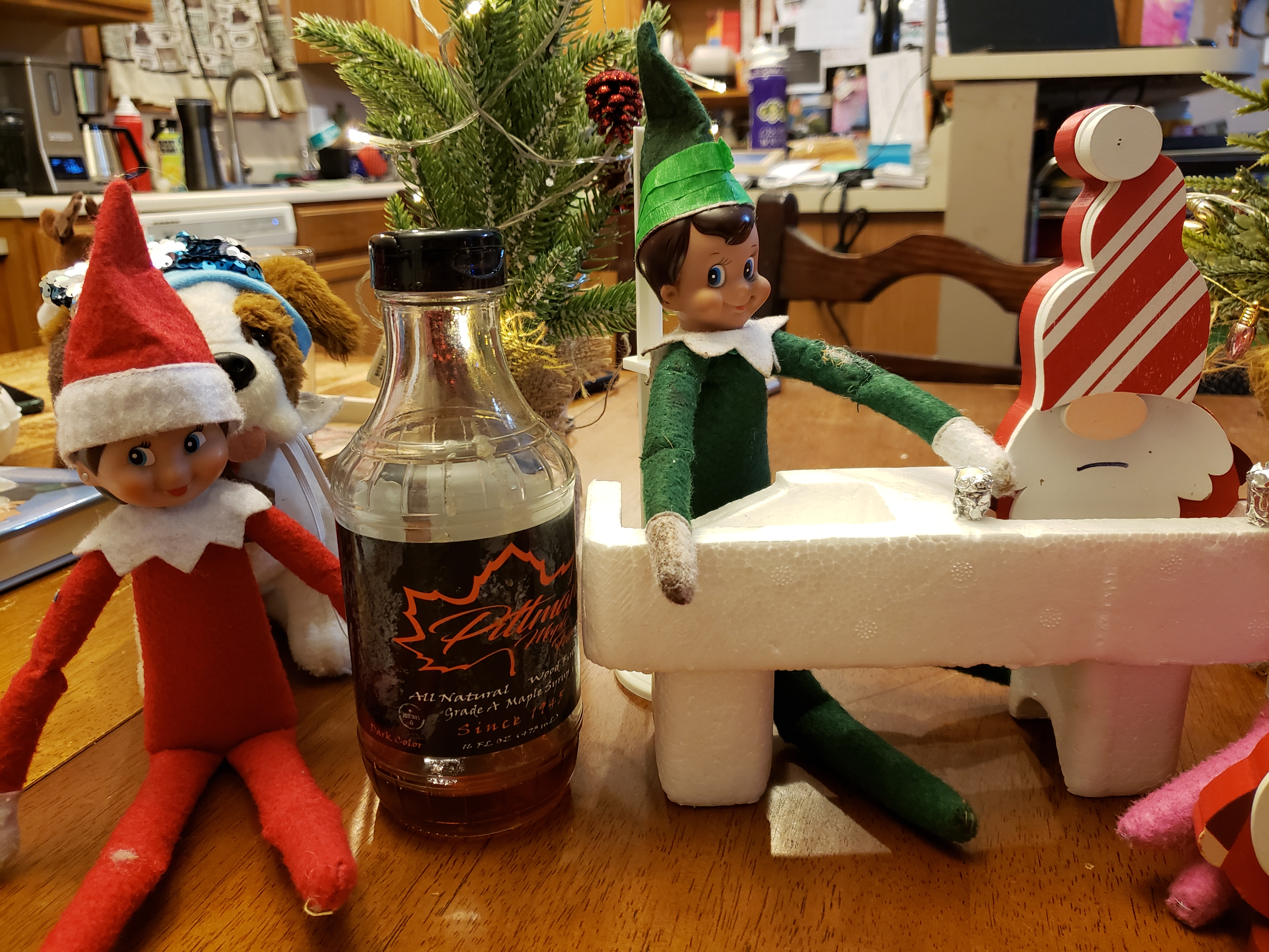 Nim and Lil watched as Figgy downed his 34th shot of Grade A maple syrup.
