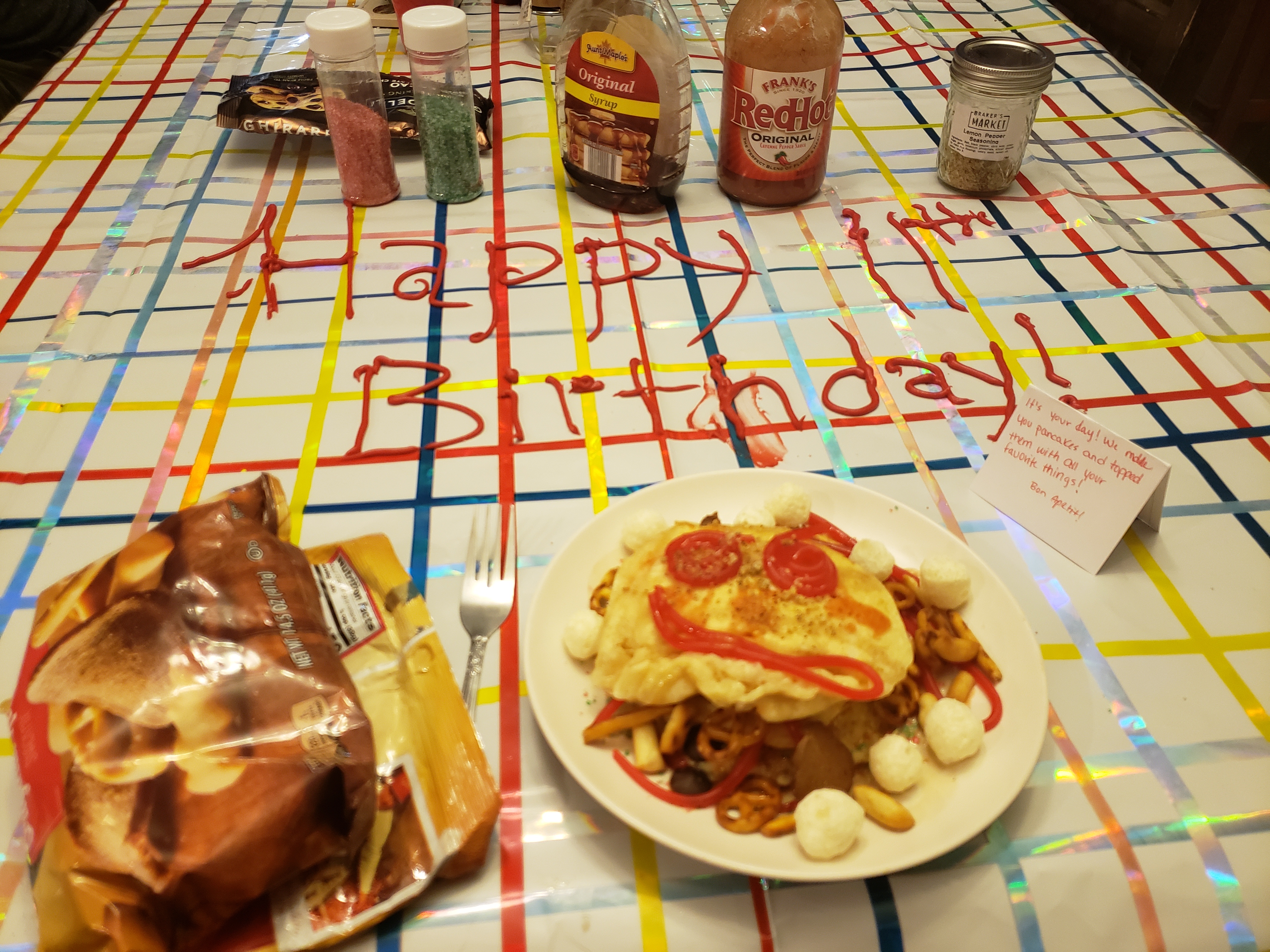 “Yes. Drop by the Malloy’s and leave a note explaining your absence. Leave them a special craft or movie or treat. Then, you can all go to Joe and Jake’s for the traditional birthday breakfast.”