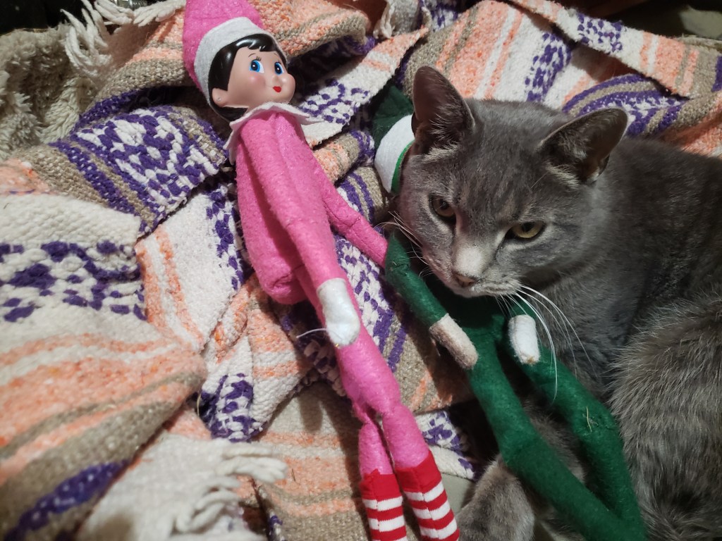 Too late. In a matter of seconds, the elves were covered in pom poms of every color and size. A small chorus of voices echoed from a recordable ornament under the tree.