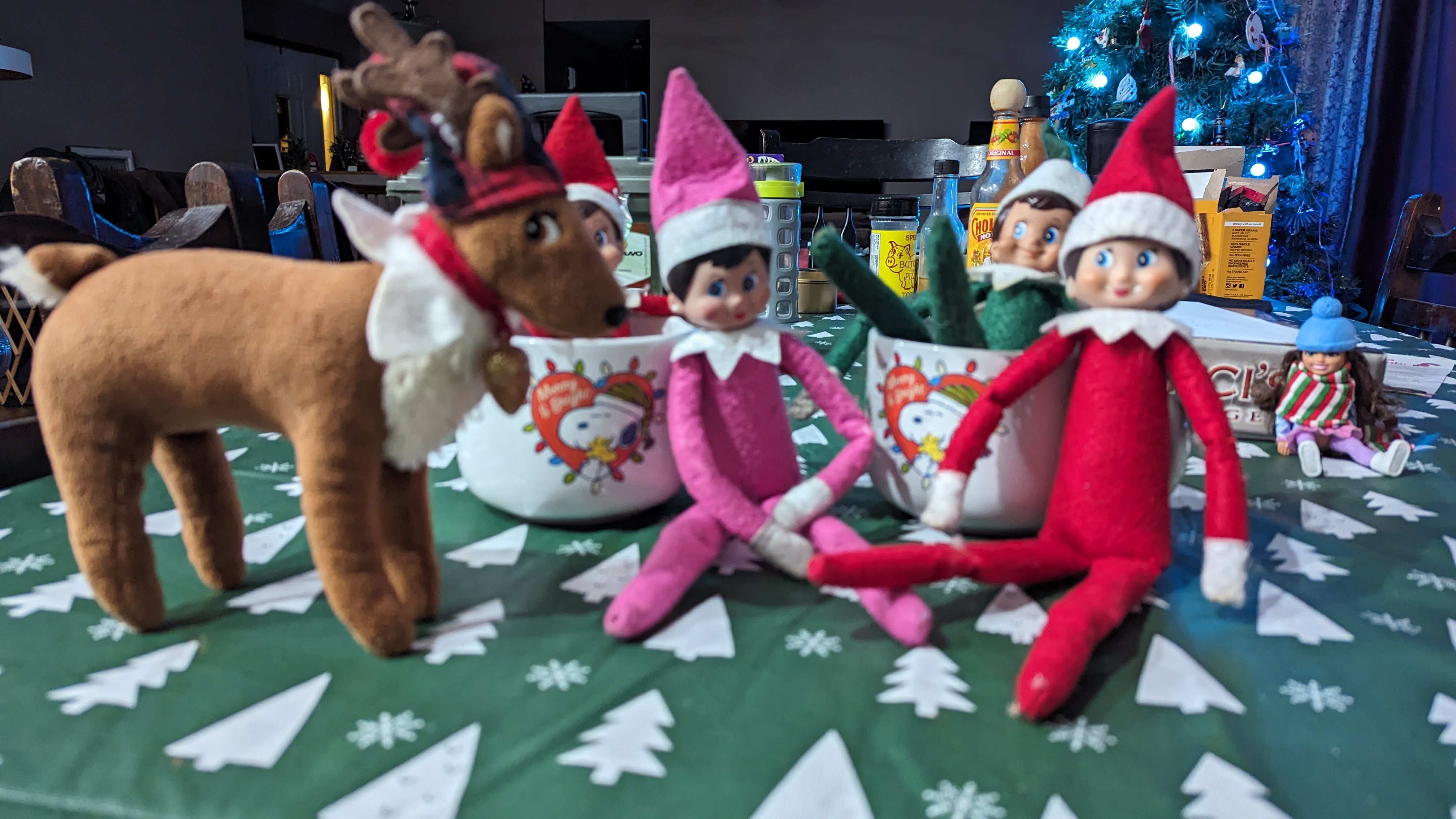 All is not well at the Children’s Hospital. While attempting to set up a soothing scene of children playing, four angry Mischief Makers caused a riot after Biggy, a small, mean looking elf, threw a snowball at an innocent and unsuspecting reindeer who only came to help. Poor Glitter was brutally attacked by the malicious elves and left cold and shivering in the corner while the foursome walked away, cackling at their antics. The poor deer left shortly after, presumably to report this attack to the Big Guy himself. One can only hope that Santa, who some have said has been a little lax in his disciplinary actions, will rouse himself and do something about these attacks. Stay tuned for more in tomorrow’s edition of the Gazette.