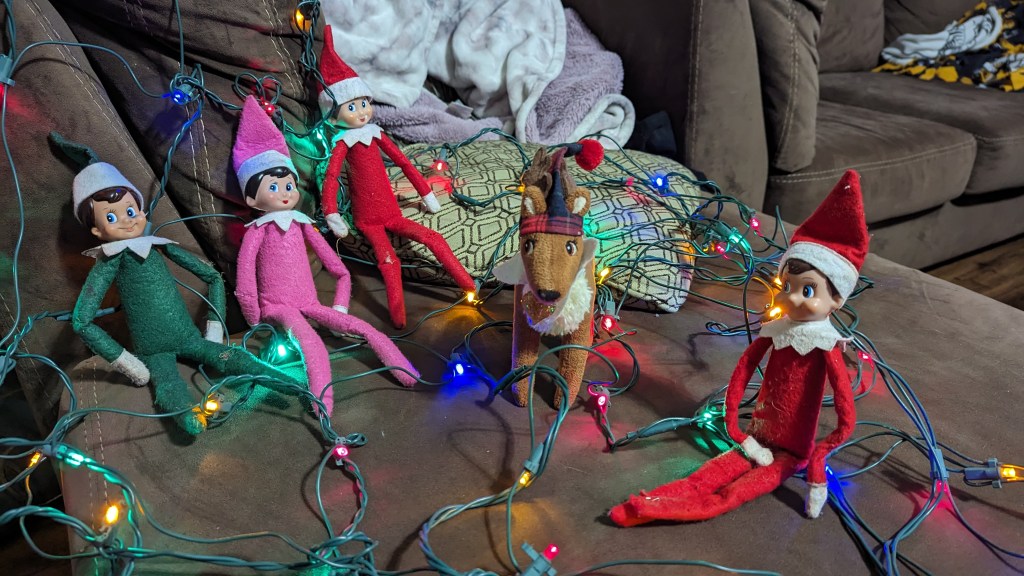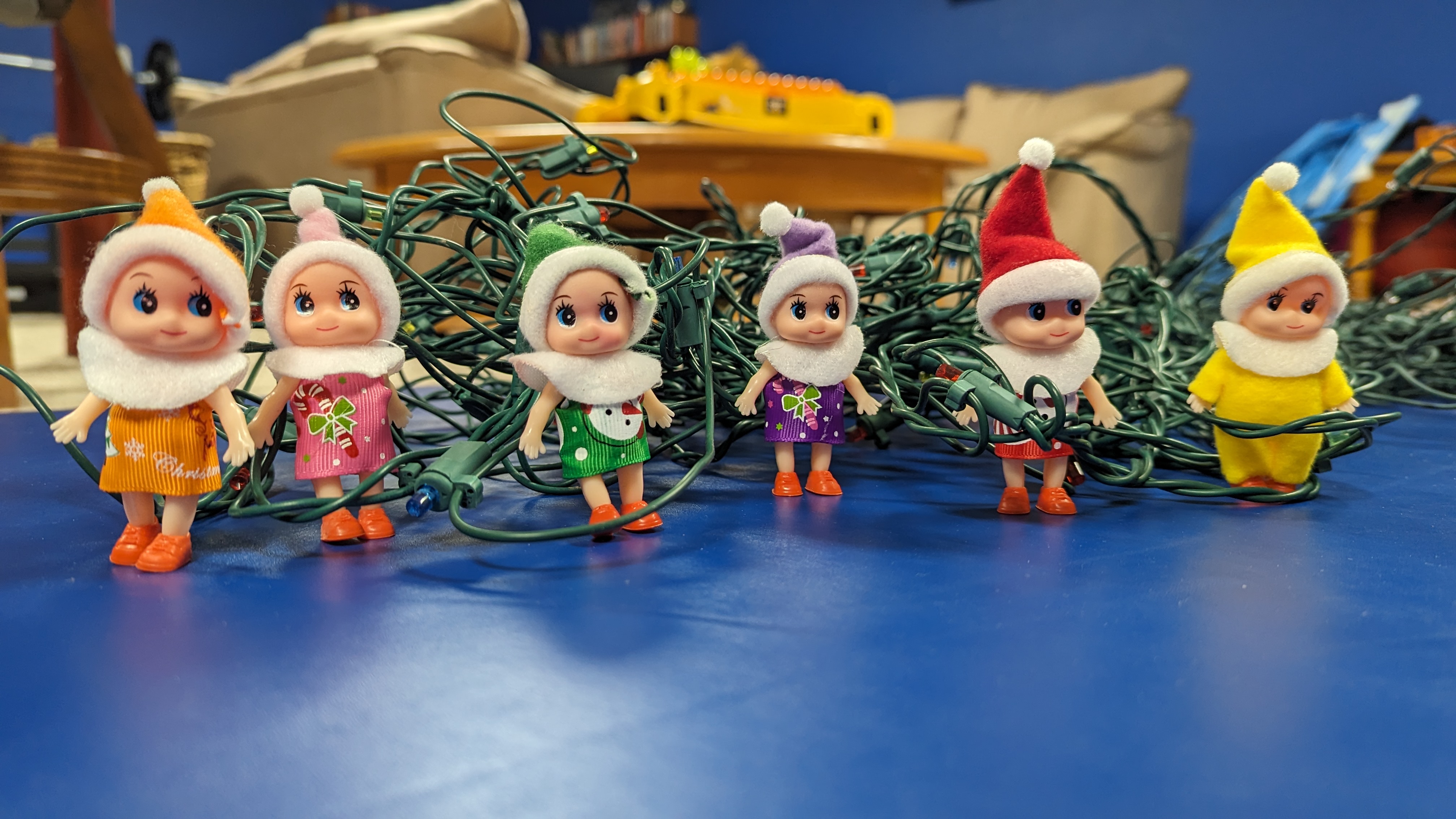 “Er, nice to meet you,” said Nim as the squad scattered and seemed to work seamlessly to finish the light display. Even Sparkly was mystified by this group of energetic elves racing around and decorating at top speed.