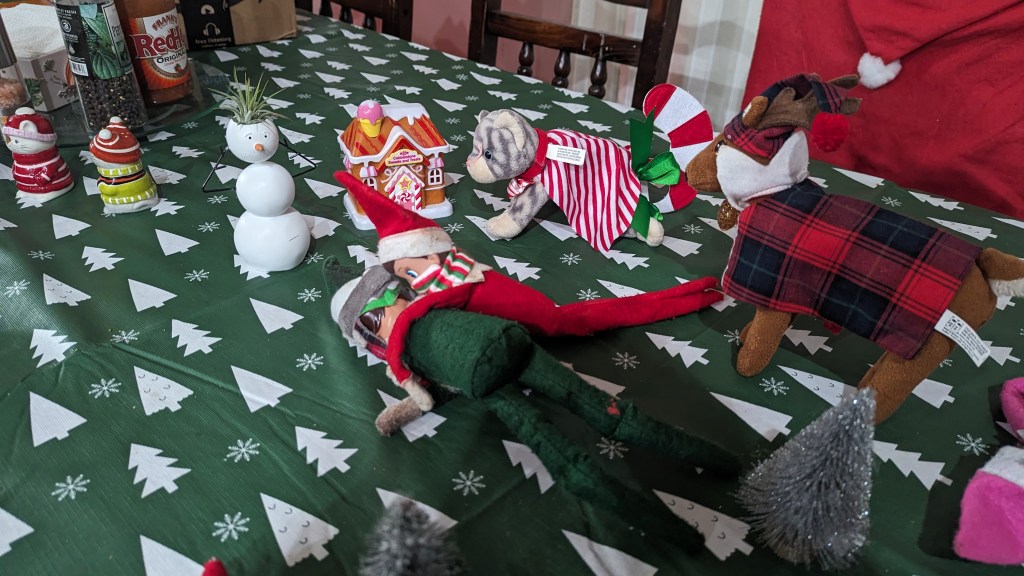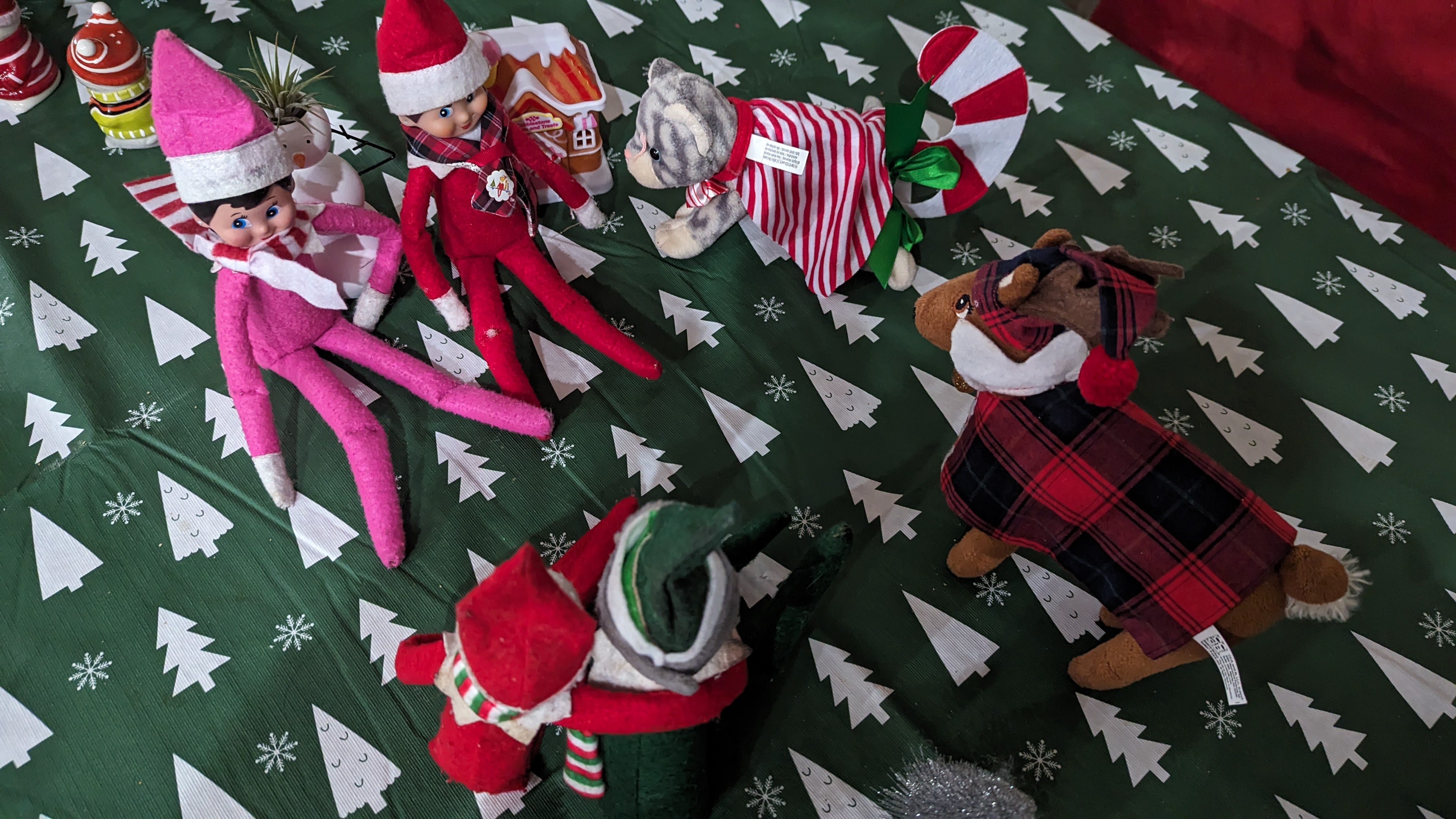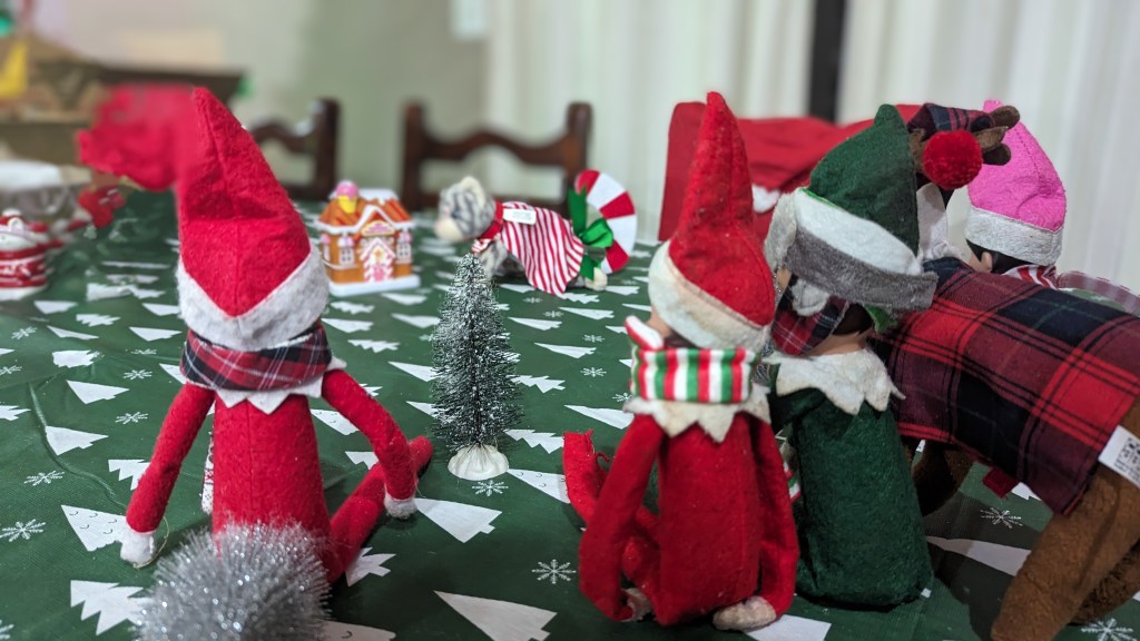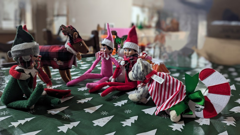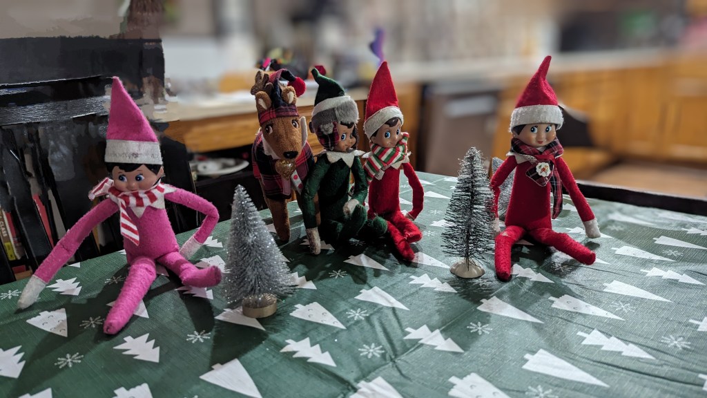 Lil spoke. “We are Santa’s Mischief Makers. I’m Lil. This is Nim, Figgy, Pixie, and Glitter. We are on a quest directly from Santa and we’re looking for–.”
