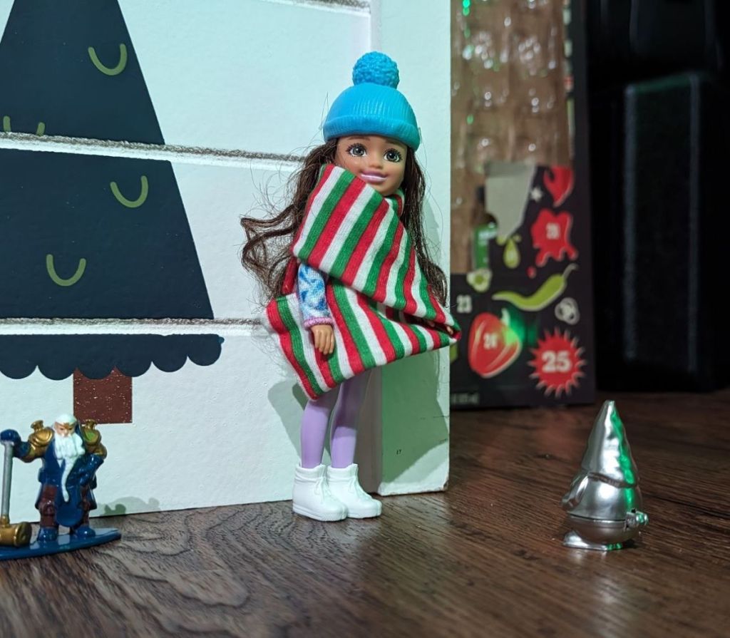 A deep voice boomed from the shadows. “Might want to ask Jingle McStockings about that.”