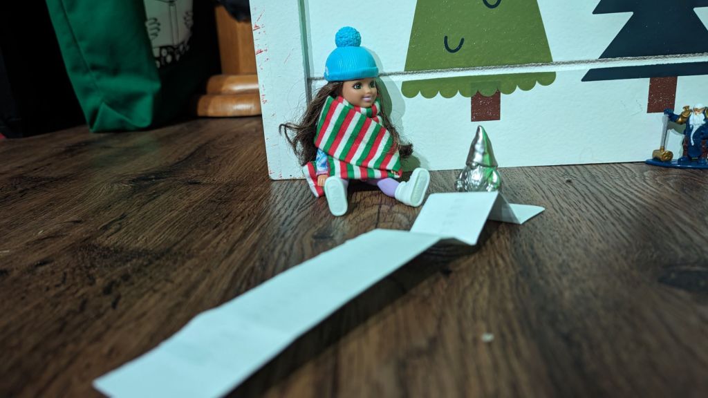 “Right,” she said. “I’m going back to the North Pole, straight to Santa’s Workshop. If I can’t find the elves, I’ll question the big guy until he breaks.”
