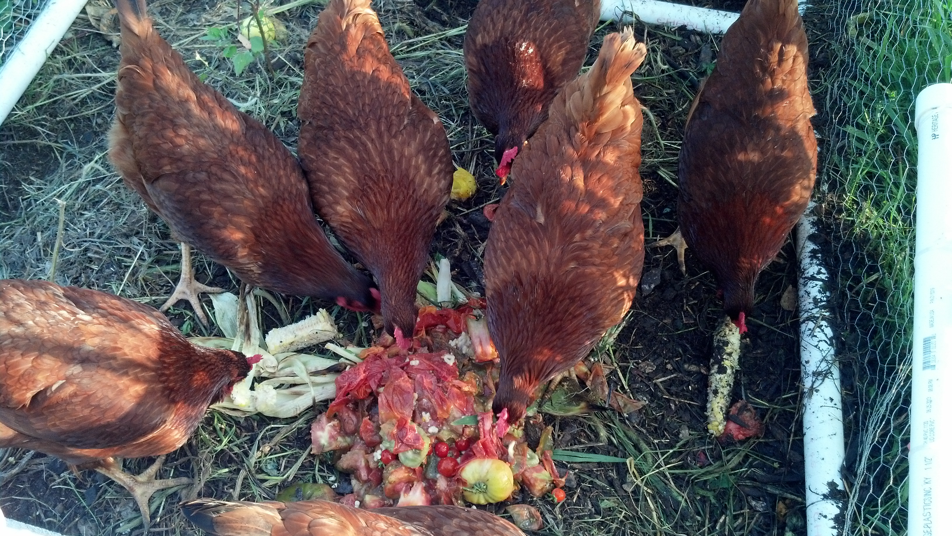 All of the tomato skins, seeds and cores went into the scrap bowl for the chickens. They were very happy with their evening snack. A few fights even broke out over the larger pieces.