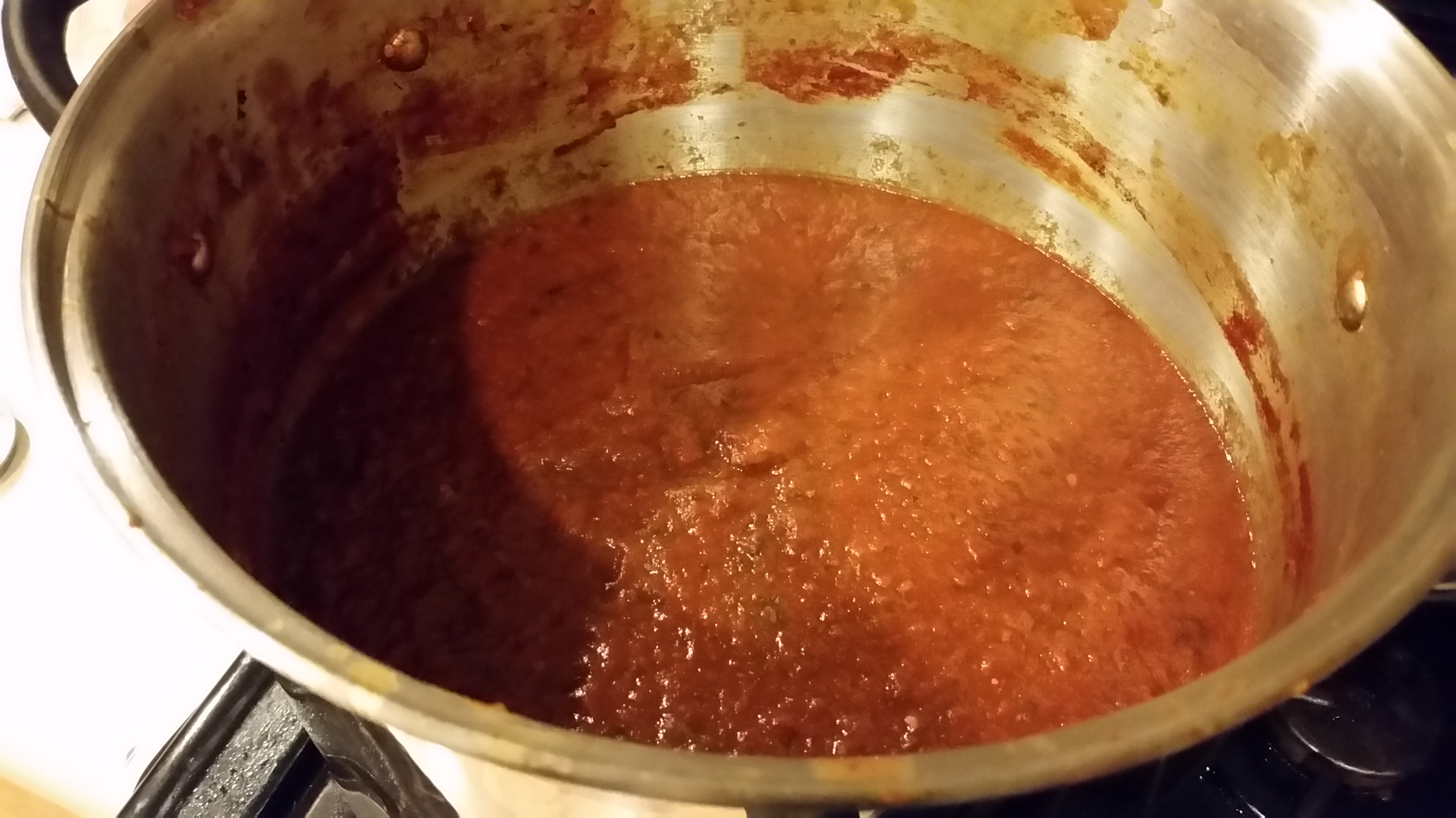 Then, I cooked it for the recommended 20 minutes, but it was still too thin and watery so I ended up cooking it for most of the afternoon. I added three cans of tomato paste to hurry the thickening process along.