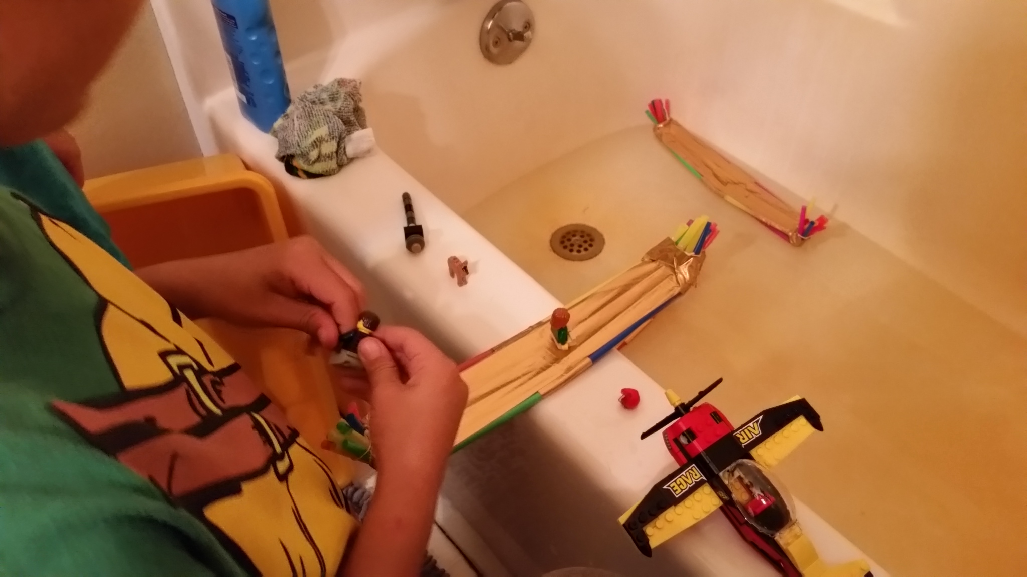 We floated them in the bathtub and the boys had their little Lego figures sailing along and, I think, fishing.