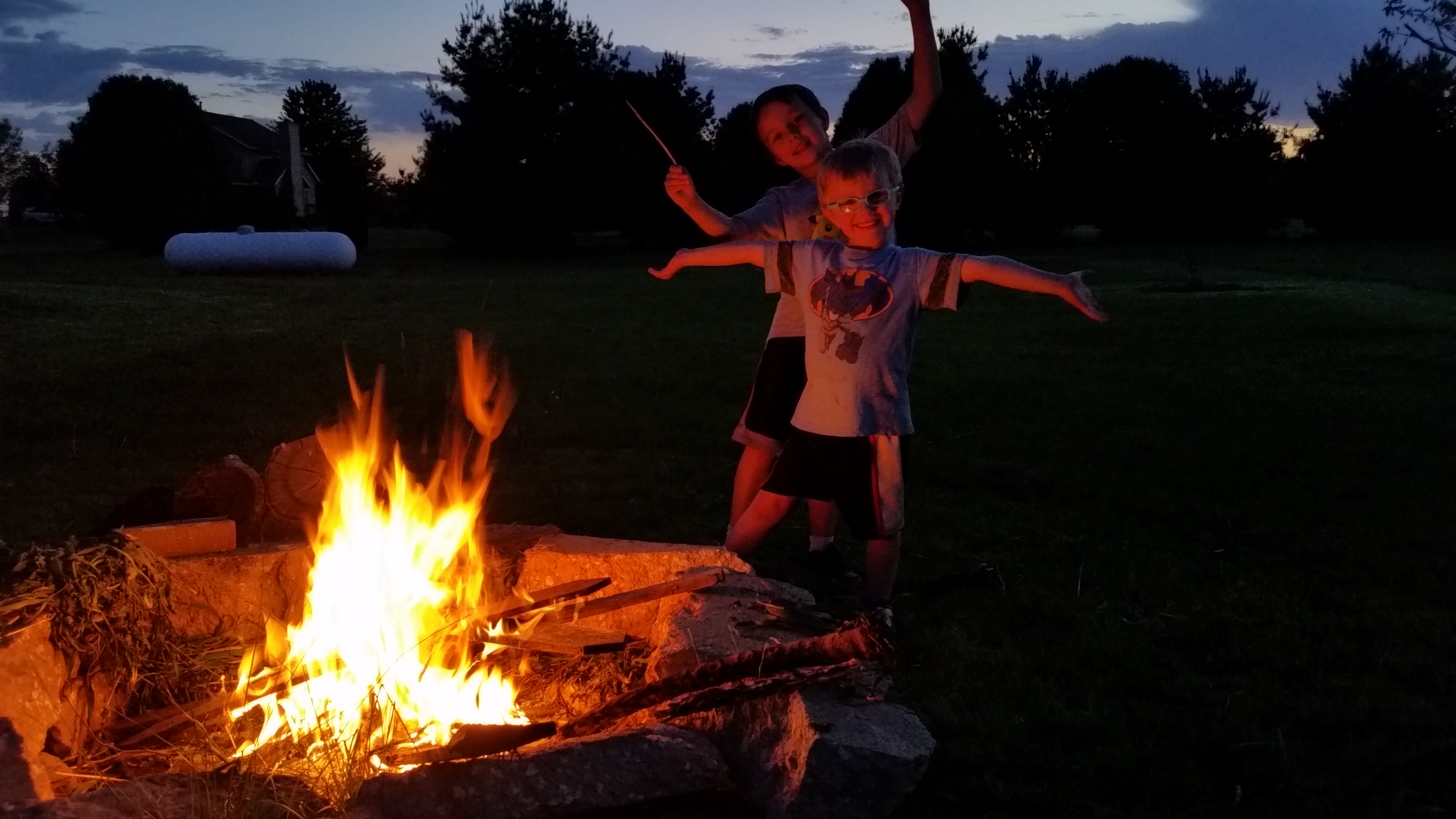 When the fire was roaring and ready, we all sat around the fire while the boys roasted marshmallows for us.