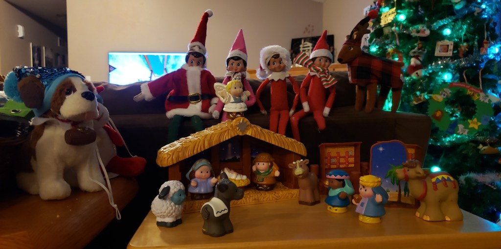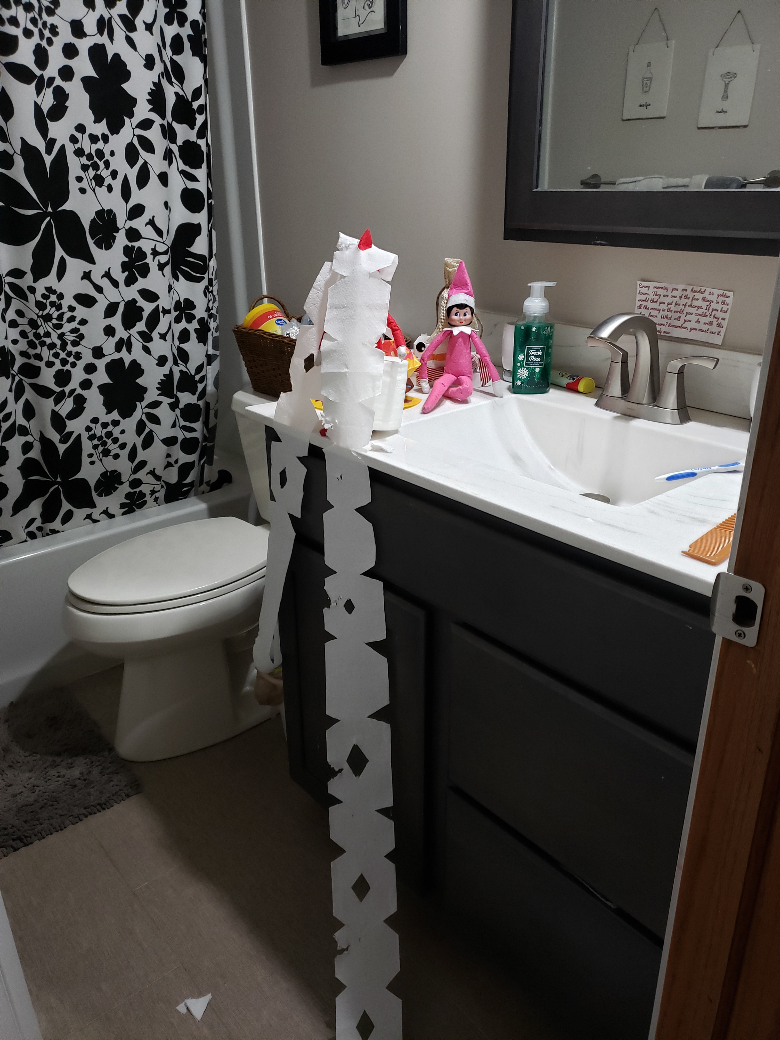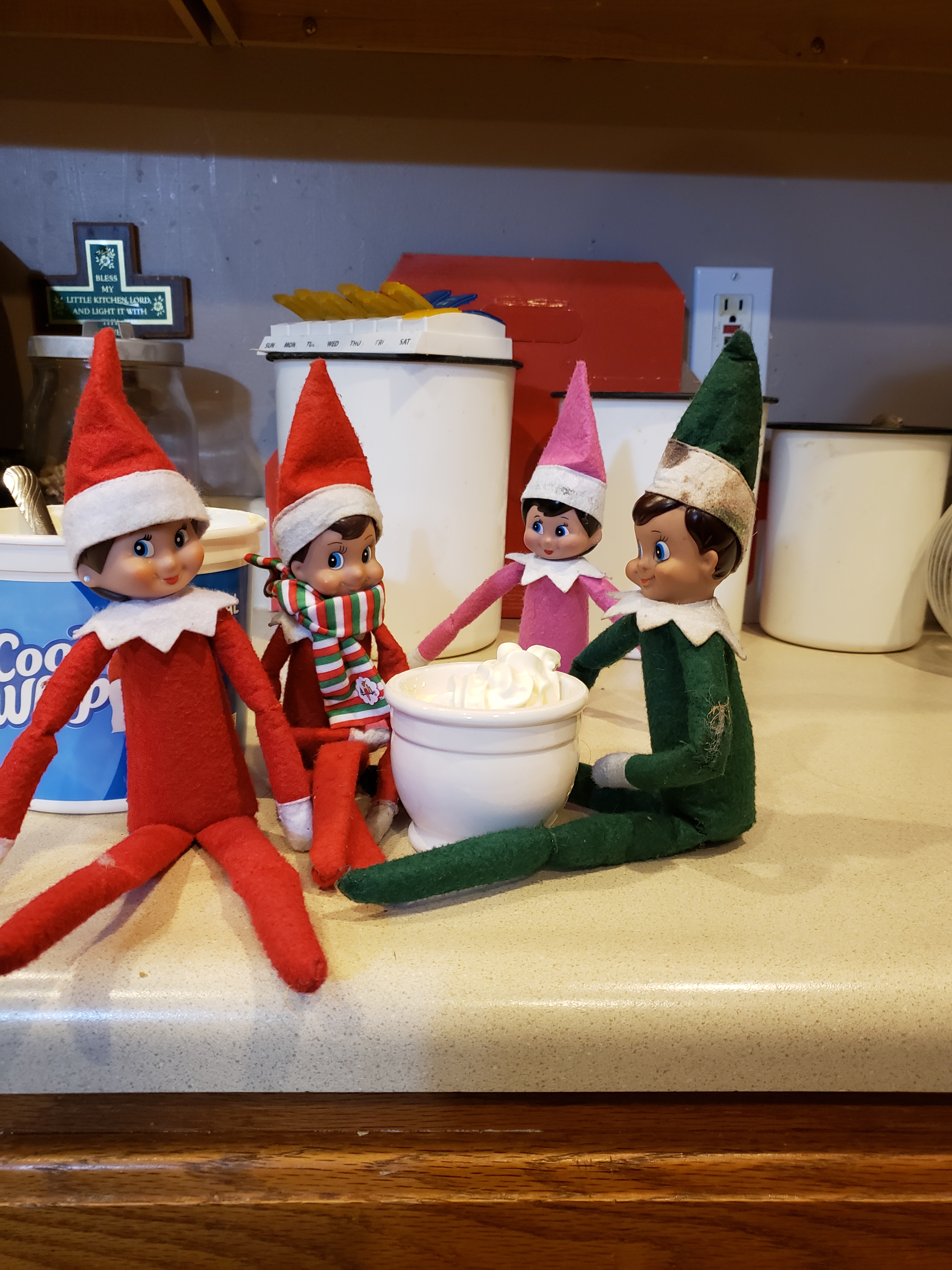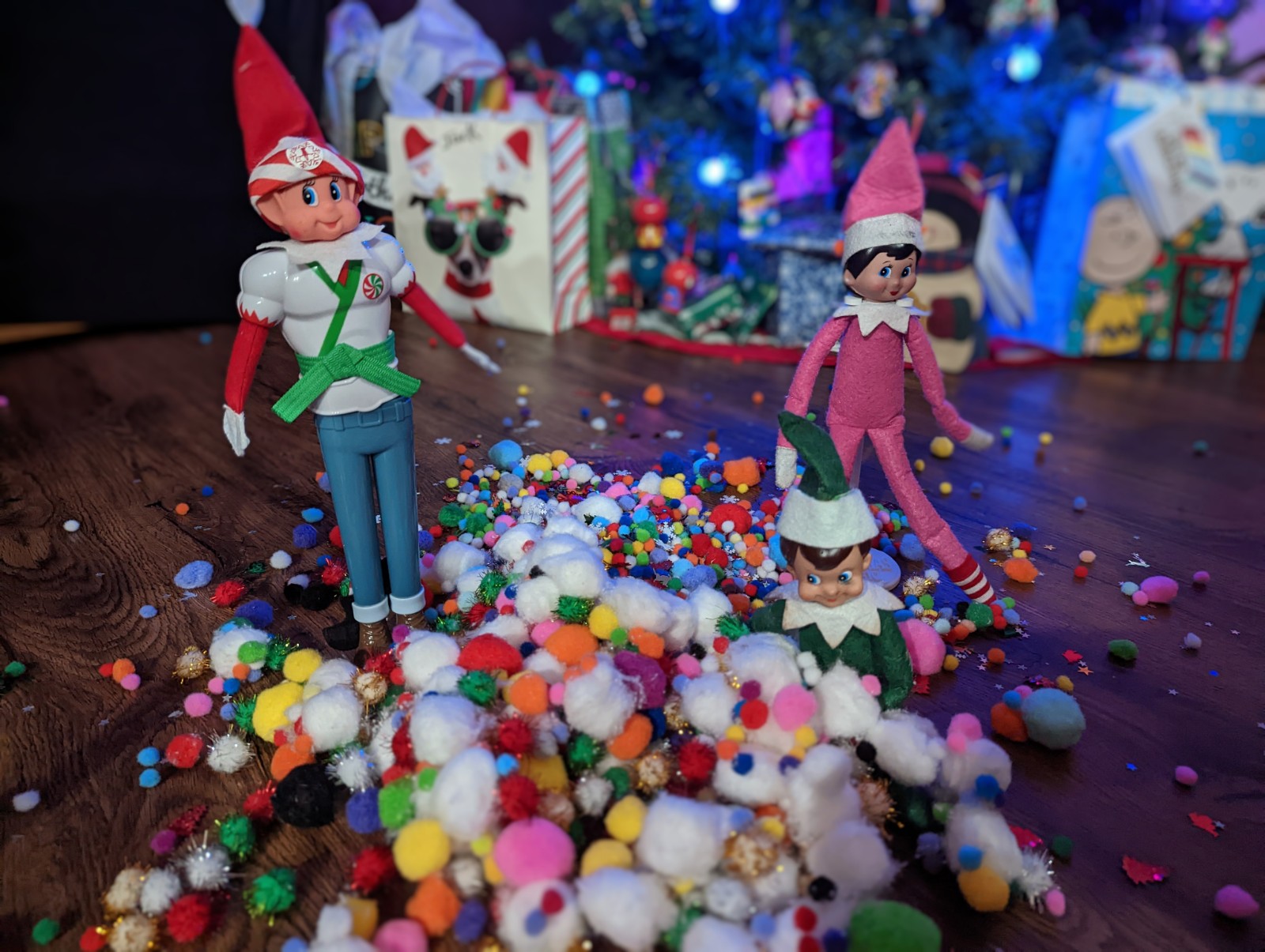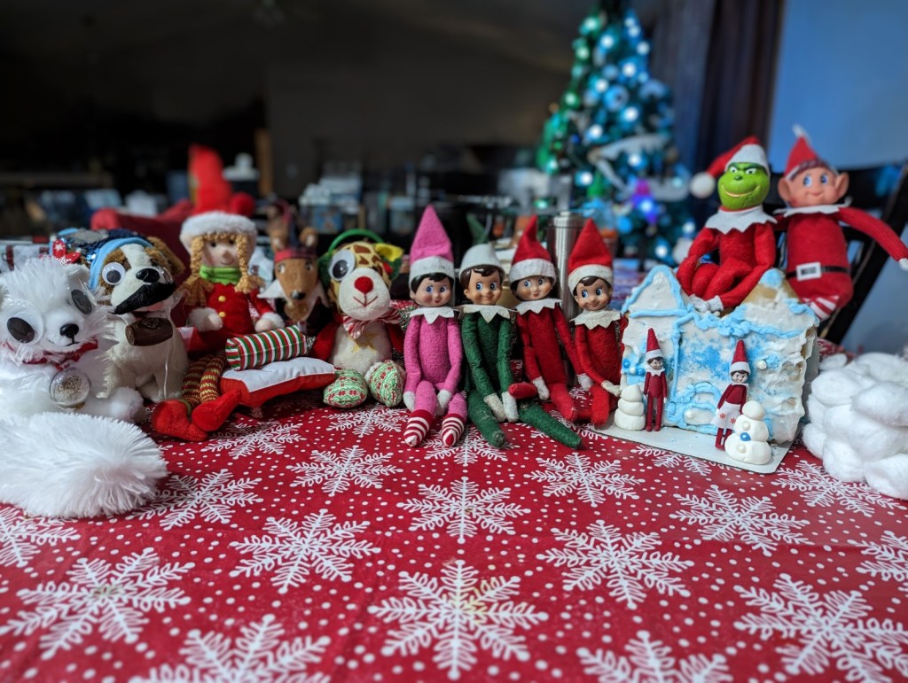 It was a rough night for Nim, Lila, Trixie and Biggy. The four so-called “Top Shelf Elves” started the evening with an argument over who was in charge of the fort planning. Poor Biggy was shamed into coming up with lame jokes at the expense of the Central Park Snowmen, who are considered the most distinguished of the Men of Snow Social Club. Tsk tsk. Things only got worse from there as Bossy Nim pelted Trixie with pillows for not decorating quickly enough. Lila joined the fray in defense of her friend and by the end of the evening, pillow stuffing covered the cafeteria floor. The Christmas tree the children decorated was in shambles, and all four elves were shouting angrily and calling each other names like “Nincompoop” and “Ninnymuggin”. Will tonight’s plans bring this foursome back together? Stay tuned, this reporter is on the job!