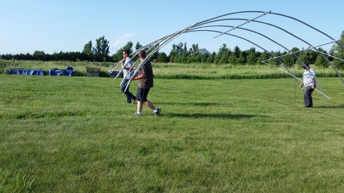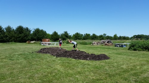 And finally, at the end of May and into June, we transported the dirt and moved all of the pieces of the greenhouse over…not piece by piece, but section by section.