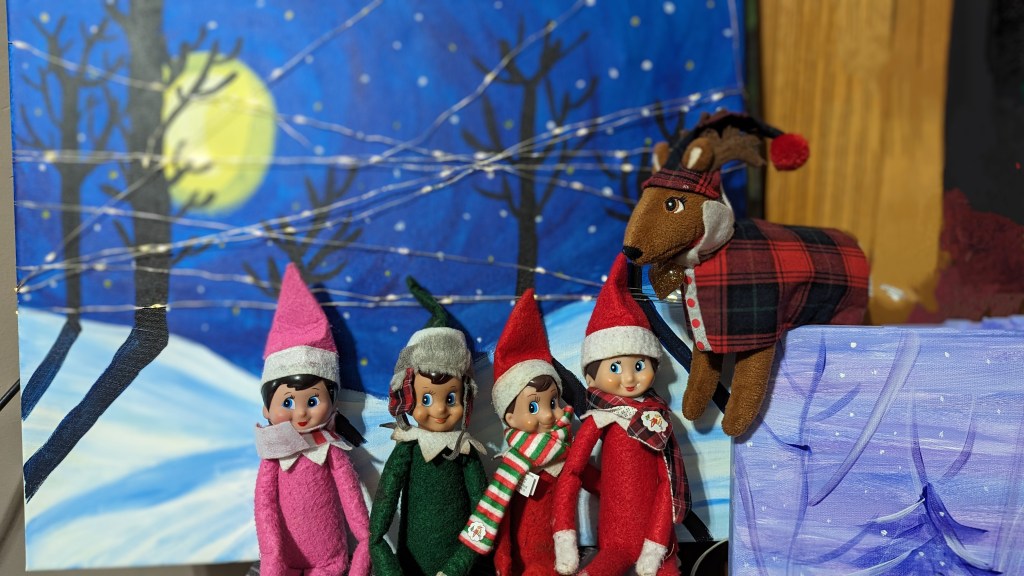 To her horror, she found Santa’s workshop in disarray—toys broken, decorations scattered, and the four elves and reindeer she’d been hunting, staring mournfully at what was left of the workshop.