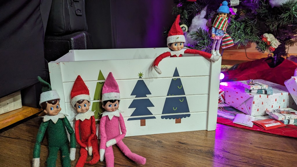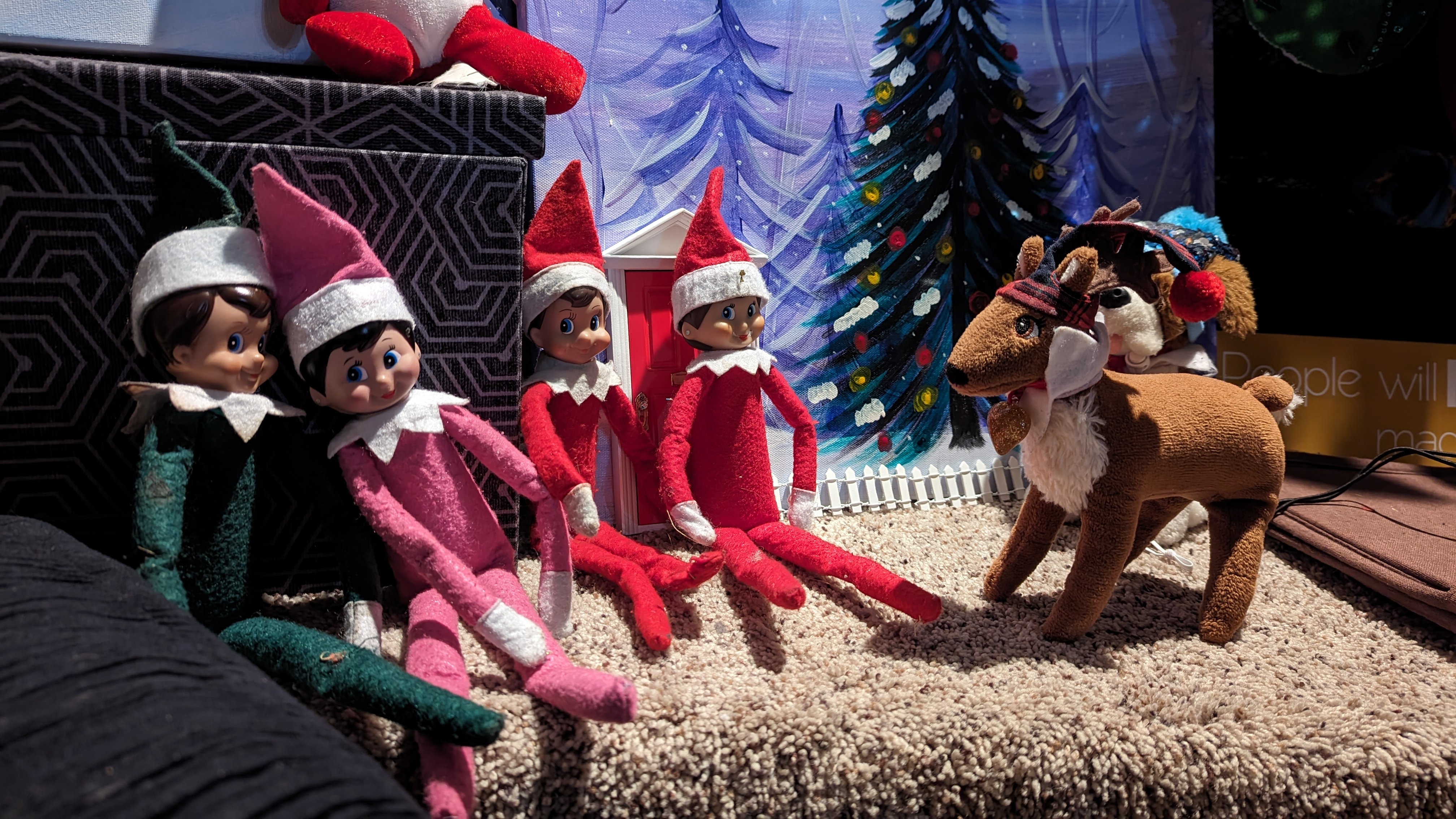 “Er, nice to meet you,” said Nim as the squad scattered and seemed to work seamlessly to finish the light display. Even Sparkly was mystified by this group of energetic elves racing around and decorating at top speed.
