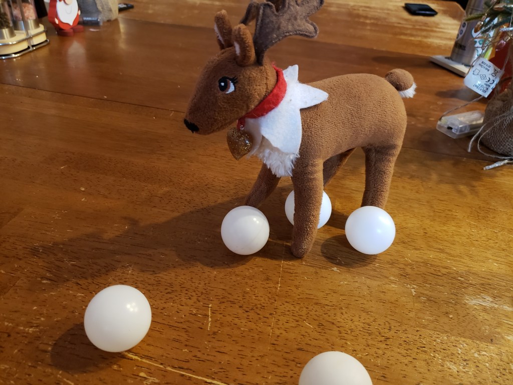 Lil lobbed a bow at Nim and they found themselves hurling Christmas bows and ribbon at each other…Nim getting tangled in the tinsel rope too.