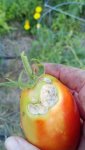 My roma tomatoes are in trouble. They get almost all the way ripe and then they look like something (or someone) took a big bite out of them, only there are no bite marks and the hole is all crusted … Continue reading →
